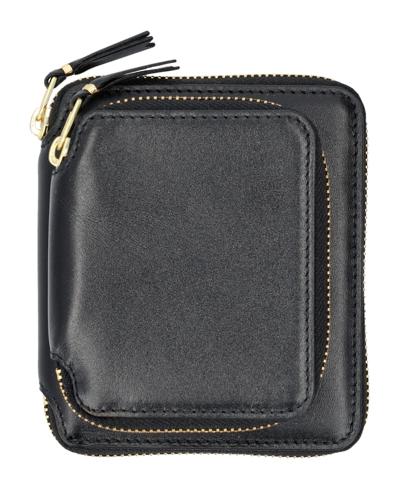 Leather Outside Pocket Zip-around Wallet By Comme Des Garçons Wallet. Featuring: Zip Closure Four Card Slots Note Sleeve Coin Pocket Front Zip Pocket Printed Branding Height: 12,5 Cm Width: 10,5 Cm