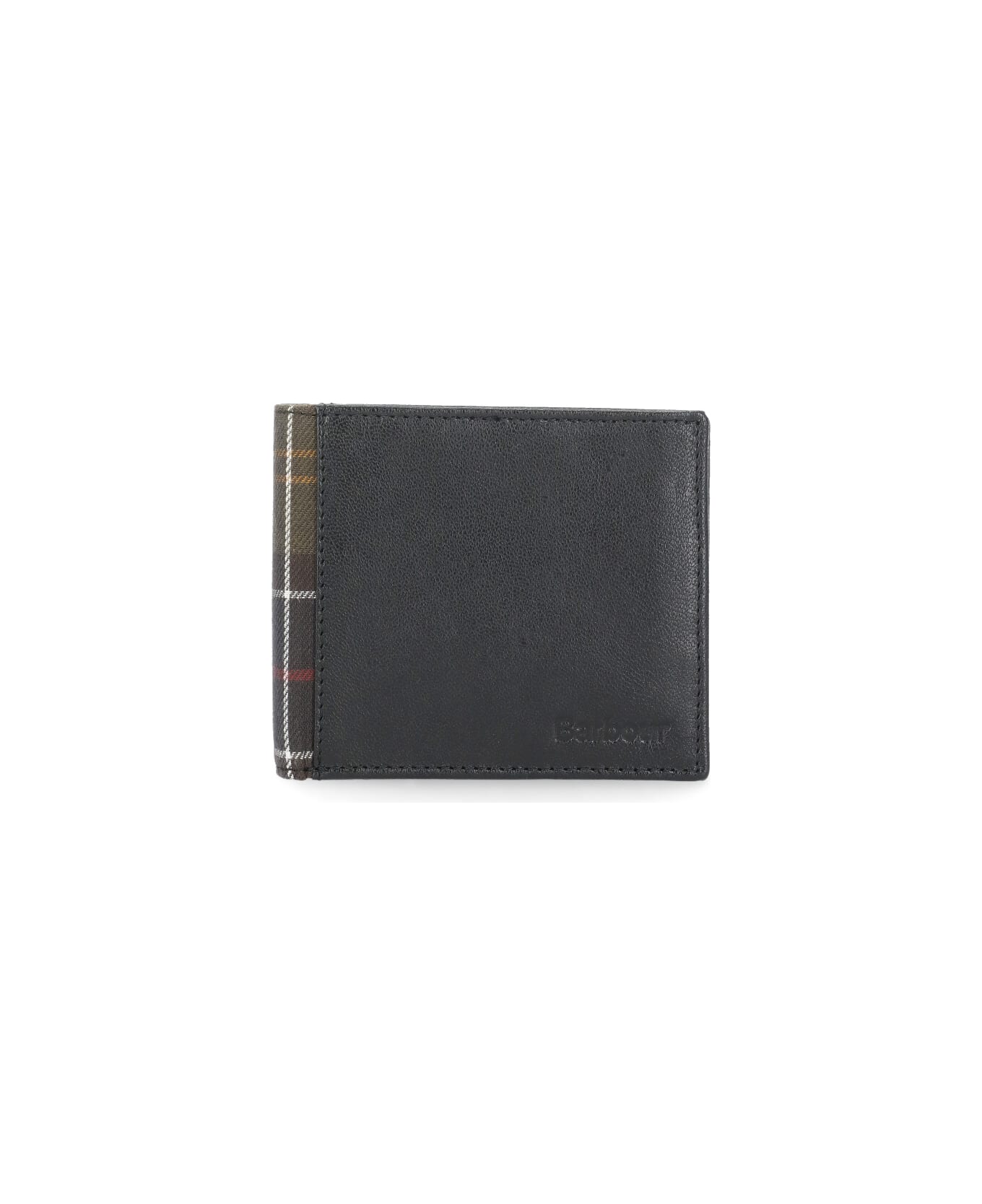 - Black Barbour leather wallet and card holder set for man - Wallet with front logo - Eight card holders - One banknotes compartment - Inserts with tartan pattern - Card holder matched with five pockets