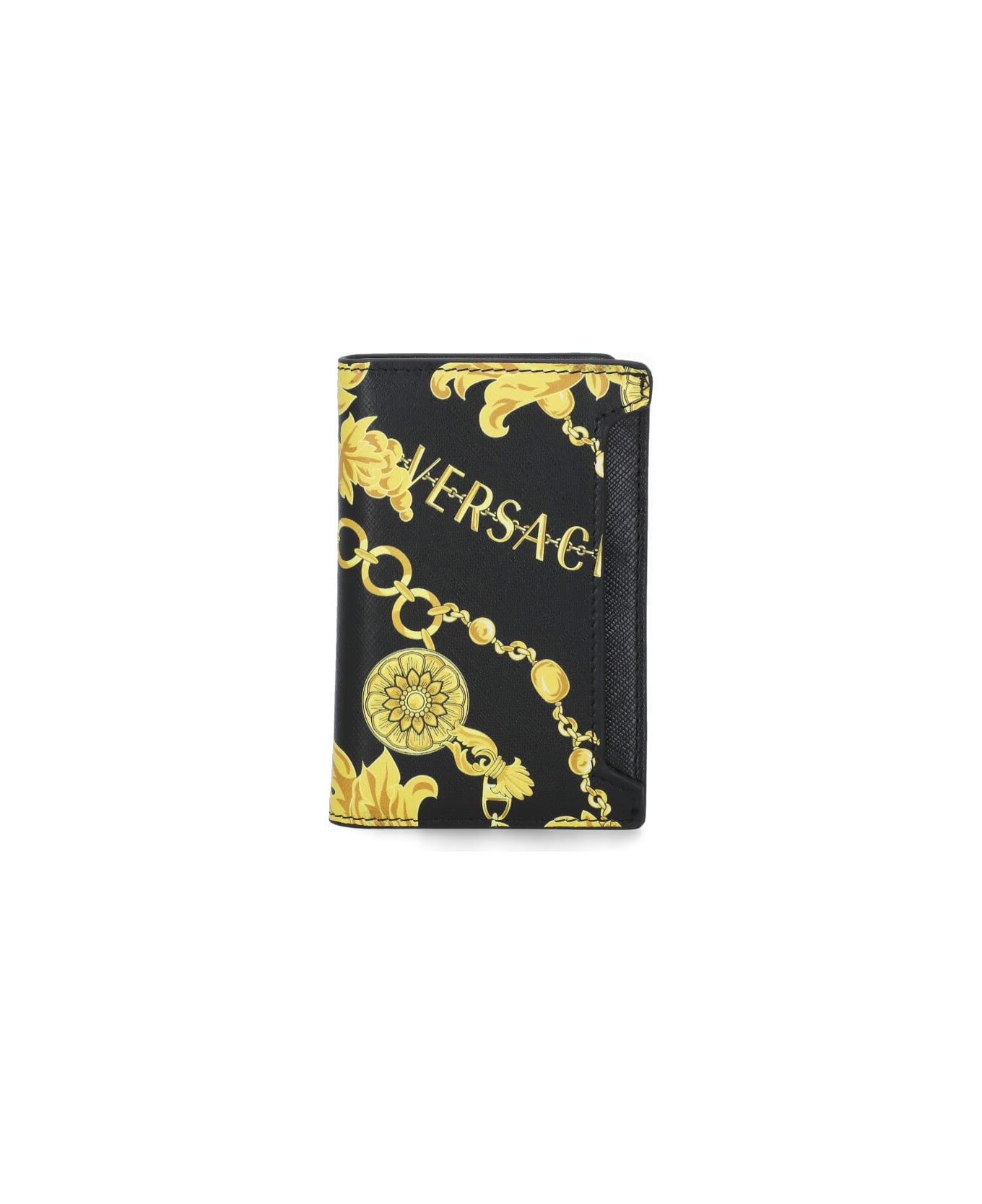 - Black Versace Jeans Couture leather wallet for man - Eight card holder pockets - One front pocket - All-over Baroque pattern