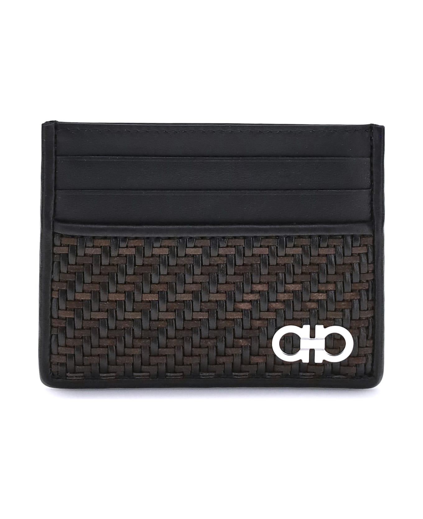 The ferragamo gancini card holder combines elegance and craftsmanship in a compact and refined format. featuring slots on both sides for practical organization, it is embellished with a palladium-finish gancini ornament on the front. the woven calfskin and suede insert creates a delicate play of color contrasts, expressing the mastery and timeless aesthetic of the house. Composition: 100% % Calf Leather Bos Taurus