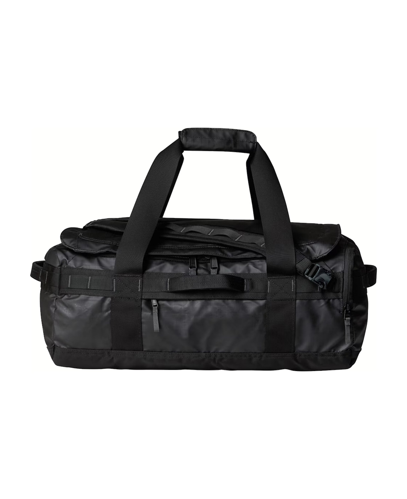 Base Camp Duffel Bag - The North Phase - black color - D-zip closure and waterproof zipper flap - zippered side pockets - padded side handles and carry handles - 4 compression straps - shoulder straps for backpack function - side logo print - Capacity: 32
