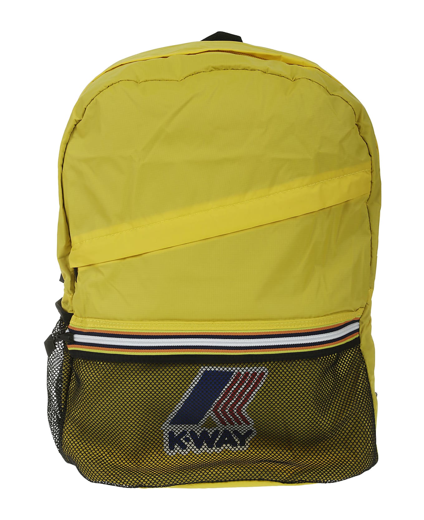 K-WAY backpack in waterproof, water-repellent, windproof, breathable ripstop fabric. Packable, zip closure, slanted zip pocket, front mesh pocket, padded and adjustable shoulder straps. Internal key ring with carabiner. Measures height 45 cm x width 32 cm depth 13 cm, colored printed logo.