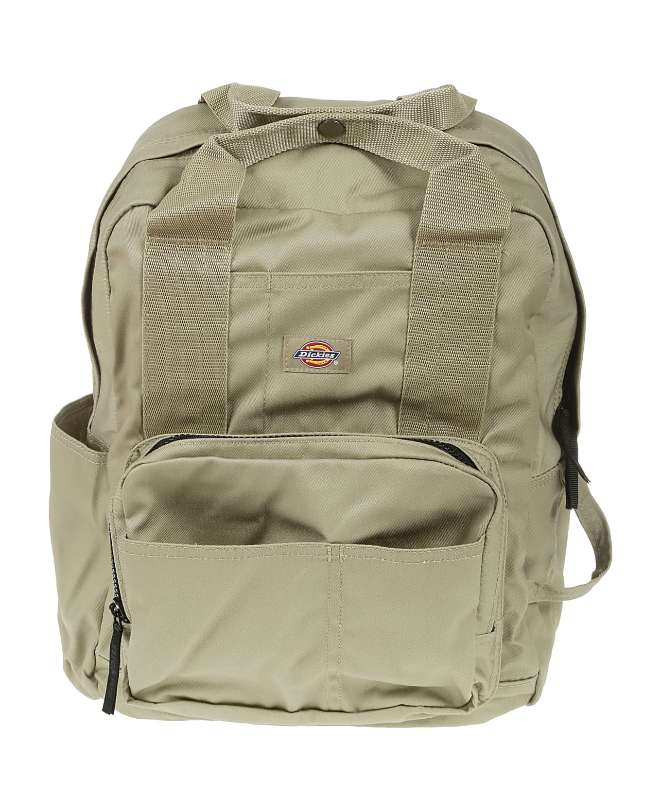 Dickies Beige backpack, top zip pocket, front zip pocket, snap handles, inside pockets, logo detail. Composition: 65% Pl, 35% Co