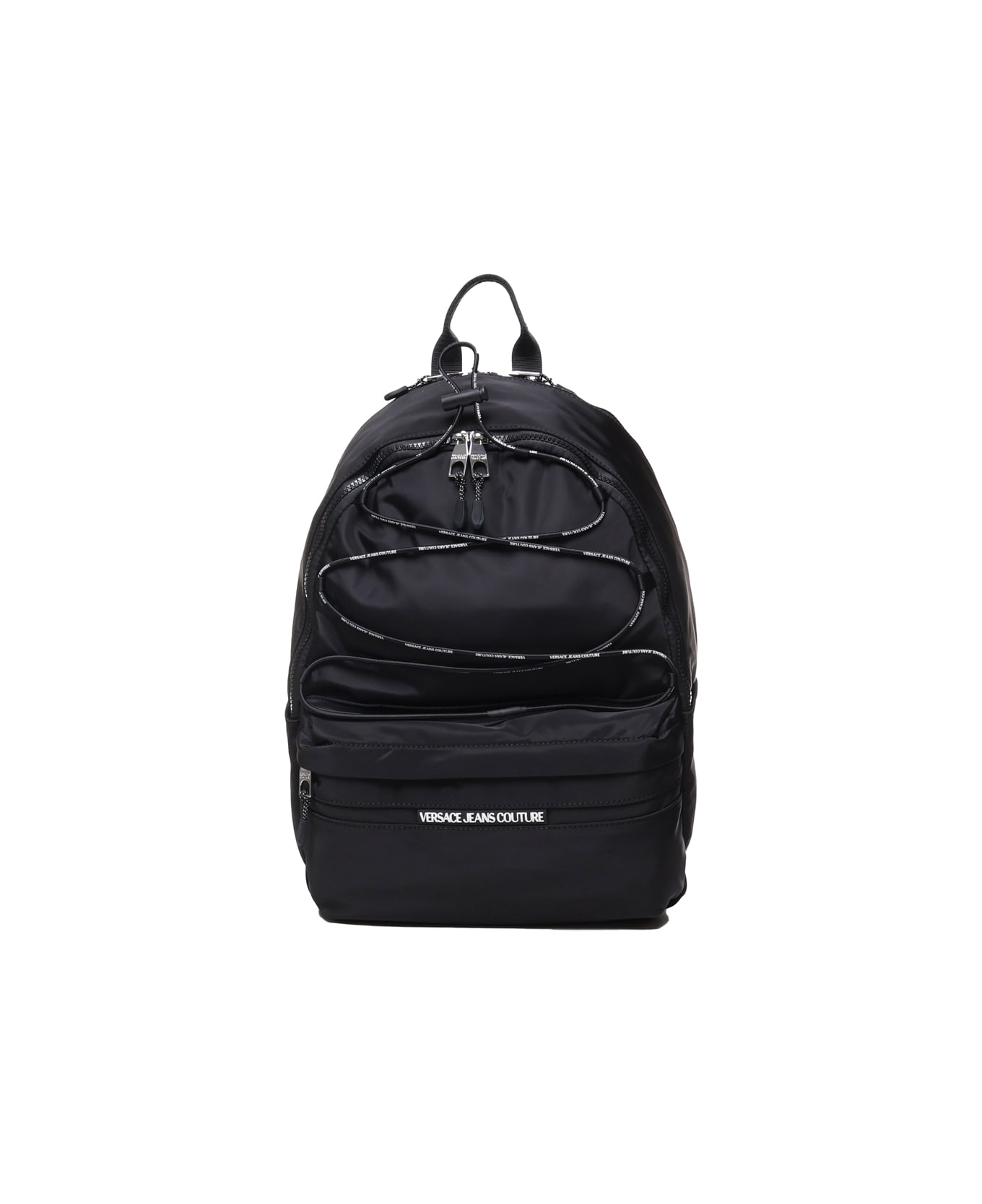 Black Nylon Hiking Style Backpack from Versace Jeans Couture -Front application with white logo -Drawstring with logo print -Zip closure -Front pocket with zip -Two adjustable shoulder straps -Round handle -Silver-colored metal components with engraved logo -Single compartment -Lining with printed logo -Dimensions: 30x43x15 cm -Colour: Black -100% Nylon