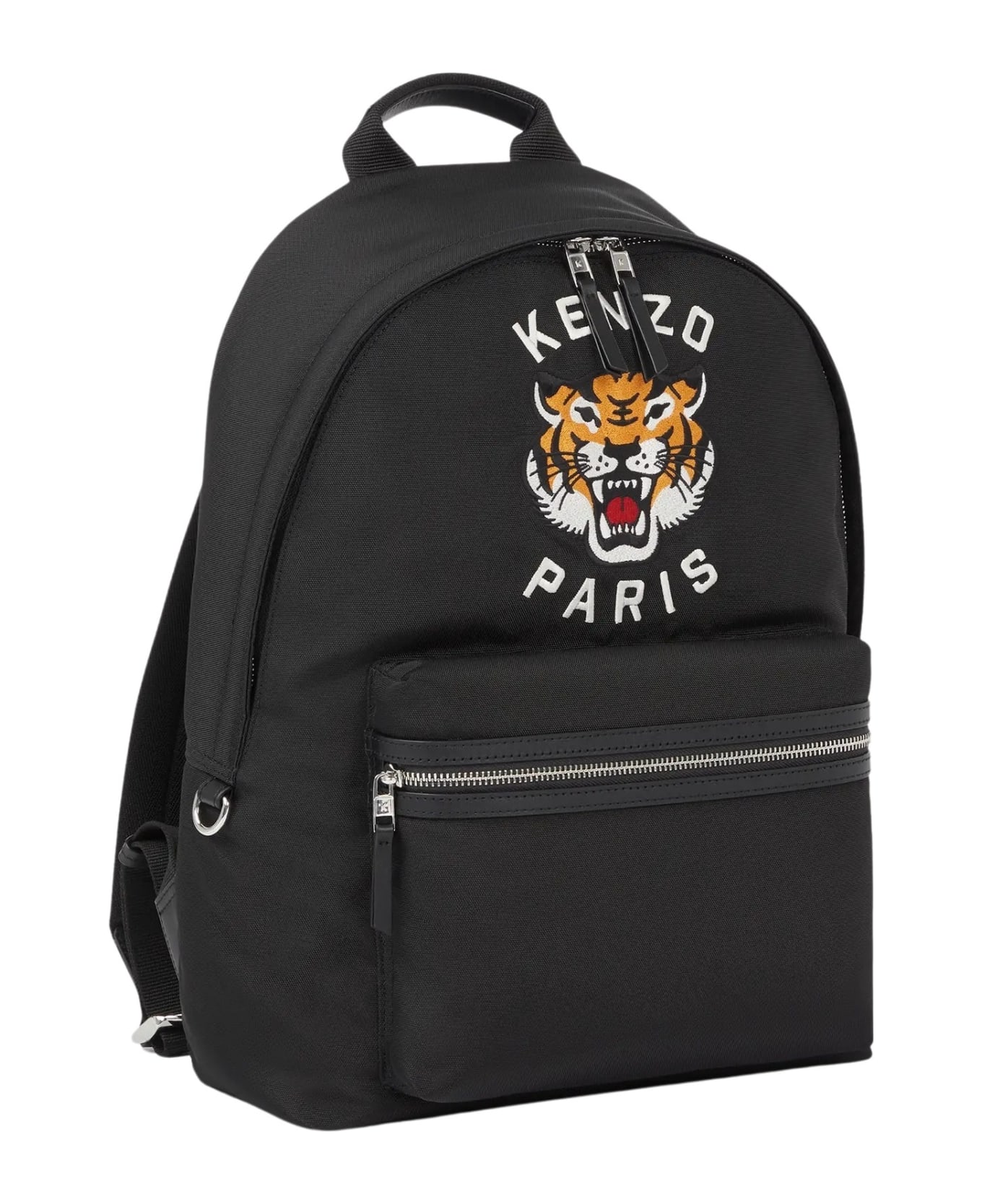 This "KENZO Varsity" backpack features one of the Maison`s iconic mascots. The roaring tiger and the name KENZO Paris are embroidered on the front. We love the attention to detail, especially the super sturdy leather handle and the spacious compartment that can be used to carry a computer. 1 external zip pocket. 1 internal compartment for a computer. Adjustable straps. Reinforced top handle in leather. Two-way zip closure. 100% polyester. Made in Vietnam.