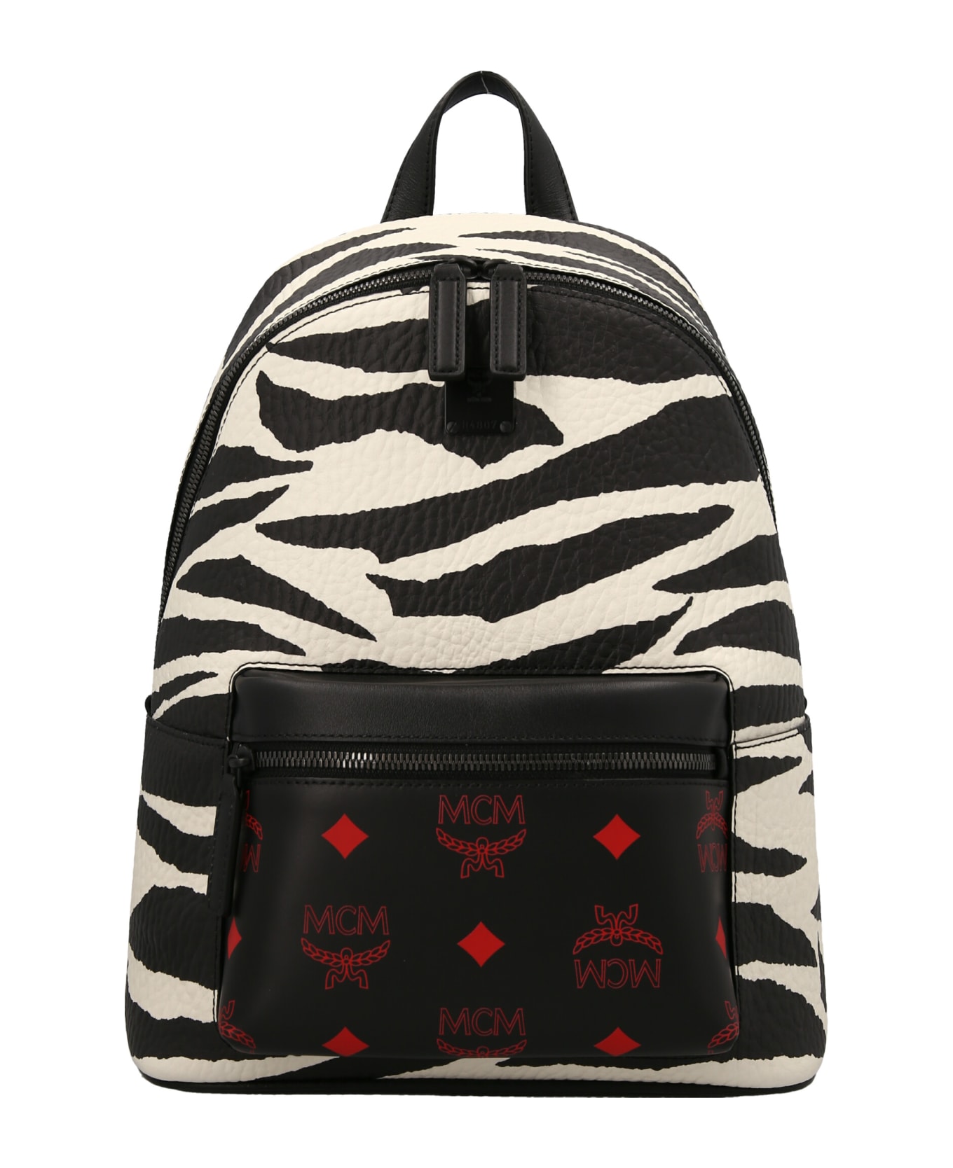 Small Stark' backpack in all-over zebra print leather with an outer zipped pocket with a logo print, a zip closure and adjustable shoulder straps.