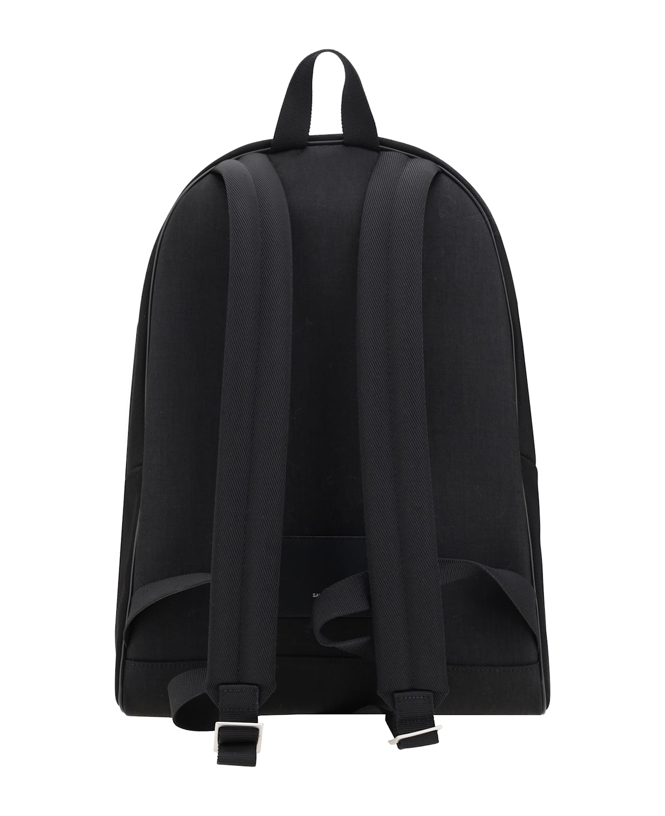 The saint laurent backpack is a perfect mix of elegance and functionality. the top zip closure offers security and practicality, while the patch pocket on the front, with the iconic logo printed in contrast, adds a distinctive and modern detail. the leather inserts enrich the design, giving a touch of luxury and resistance. the flat handle and two adjustable shoulder straps ensure comfort during everyday use. this backpack, with a sophisticated design, is ideal for those looking for a practical accessory but with a strong stylistic impact, perfect for completing every look with a touch of class.