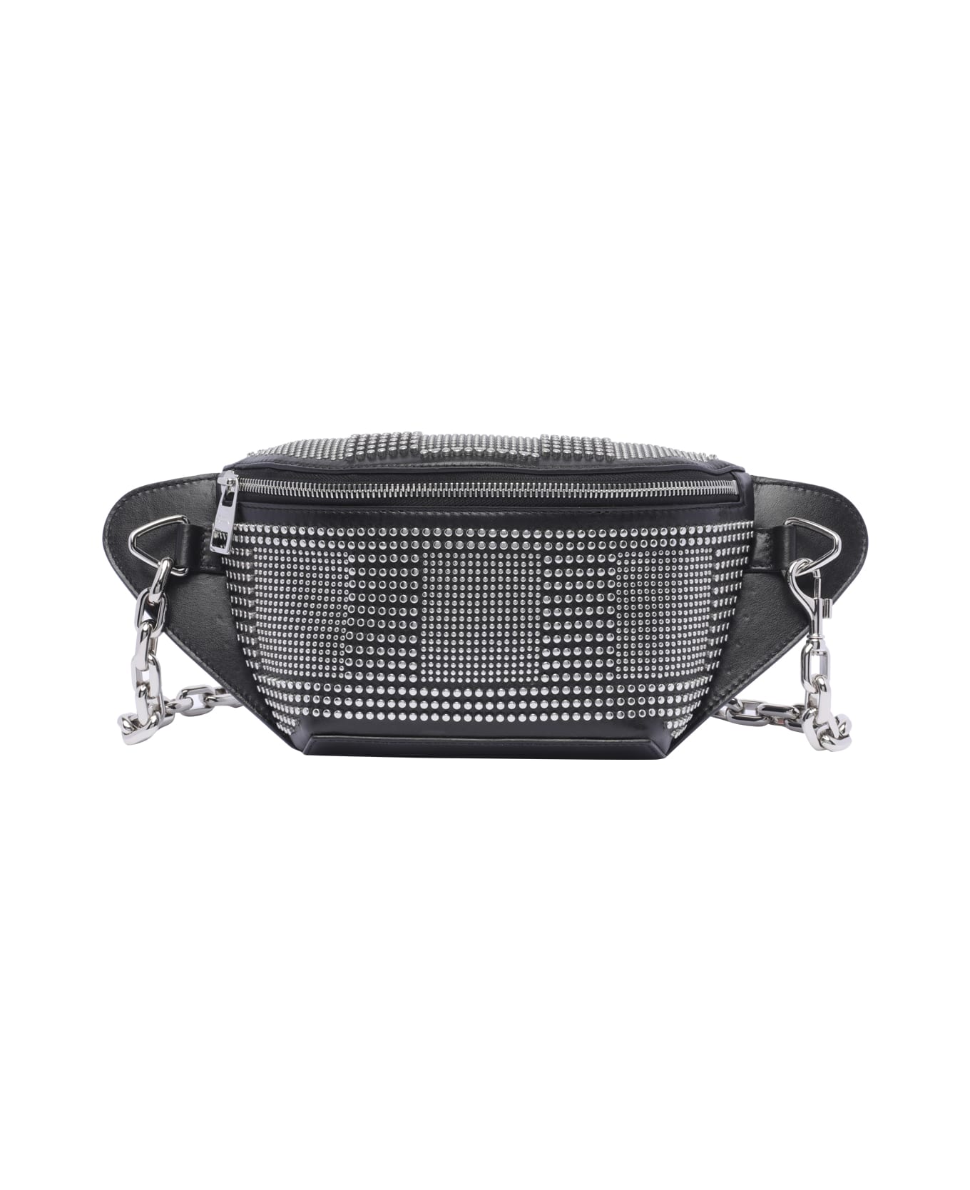 Alexander Mcqueen black Biker studded belt bag with zip closure, 1 slot, adjustable chain shoulder strap Composition: 100% Calf Leather