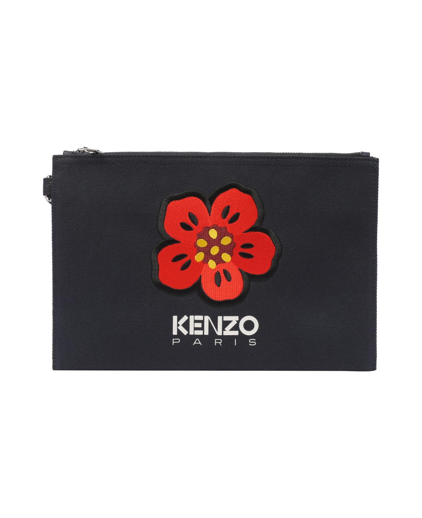 Kenzo navy Boke Flower large clutch, zip closure, inner slot, removable hand strap