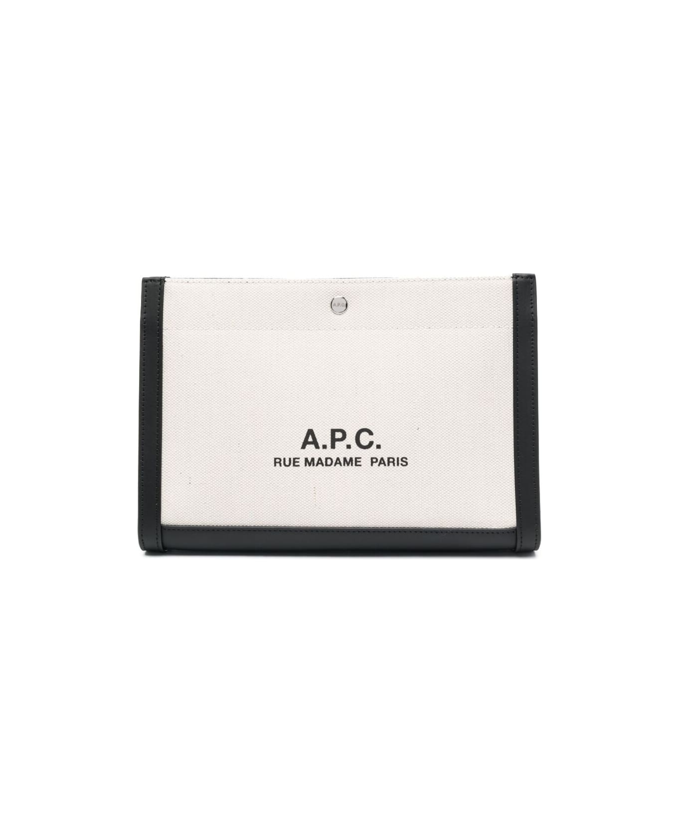 Pochette Snap button and zip fastening Black leather trim Logo print at the front Silver-toned metalware One flat pocket One main internal compartment White Cotton and linen Dimensions: 5x15x27 cm