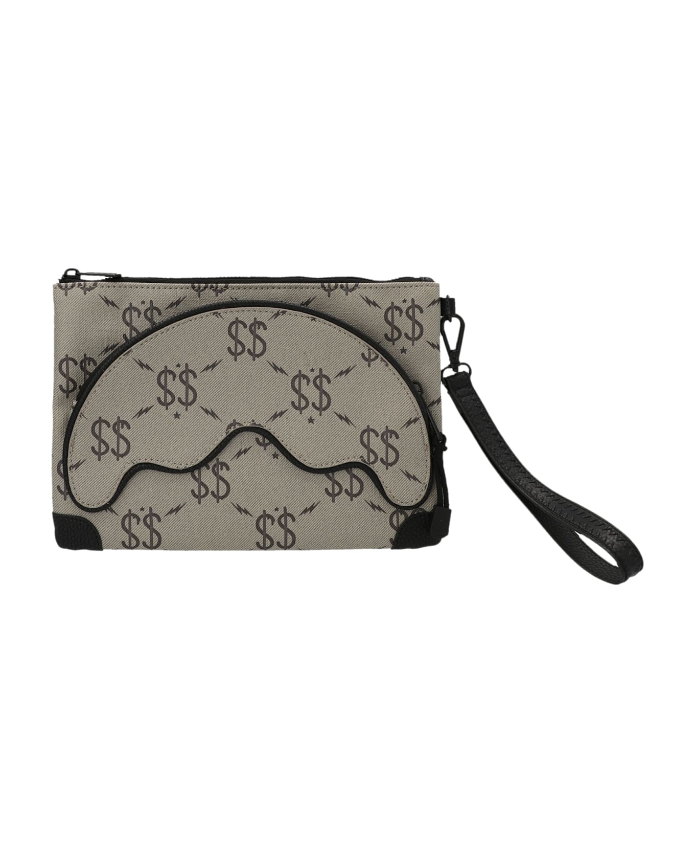 'Double Money' clutch bag with all-over print and zip closure. Composition:
