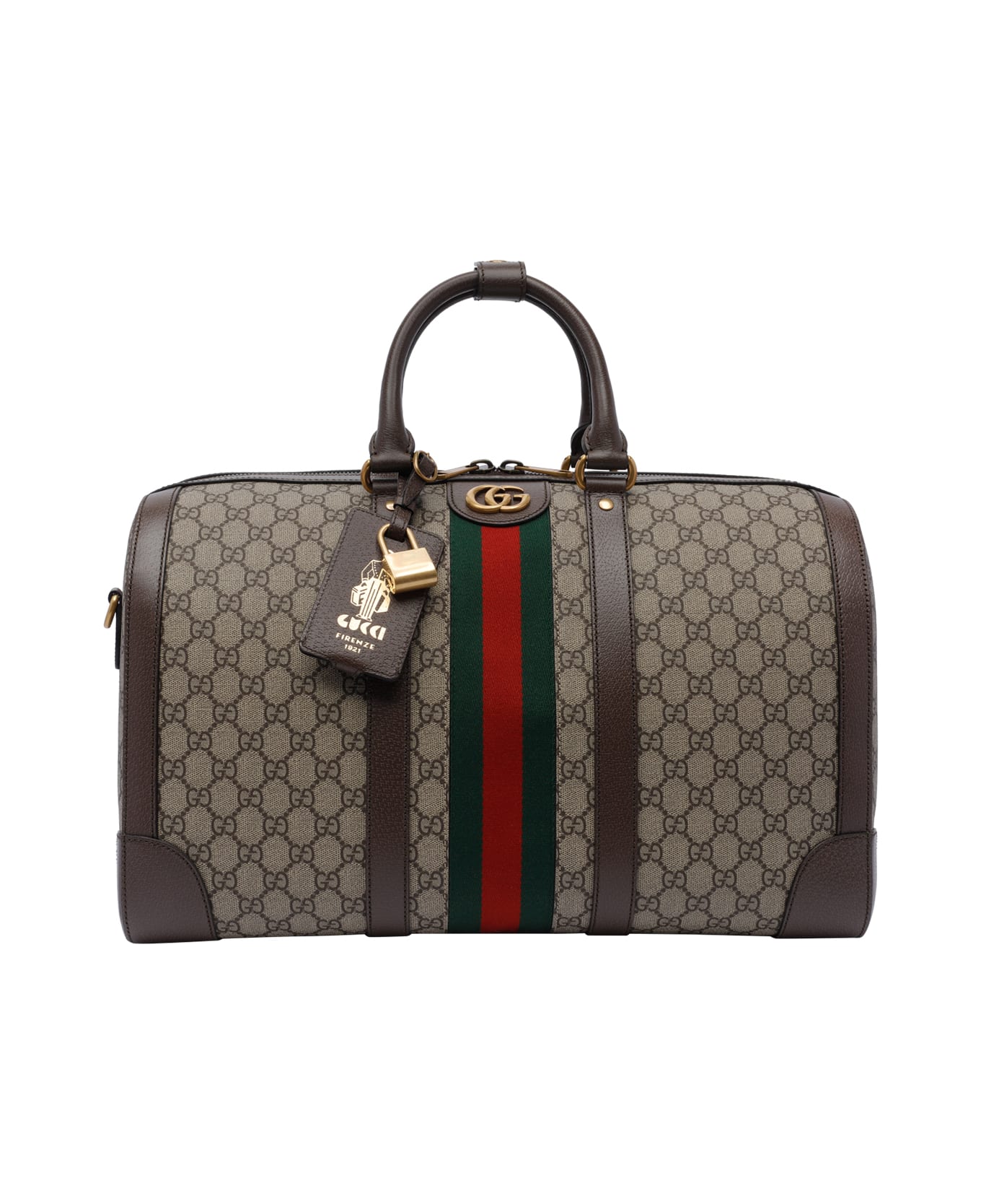 Gucci brown Gucci Savoy duffle bag, zip closure, 2 inner zipped pockets, 2 handles, adaptable and removable strap, GG logo allover Composition: 100% Tessuto Gg