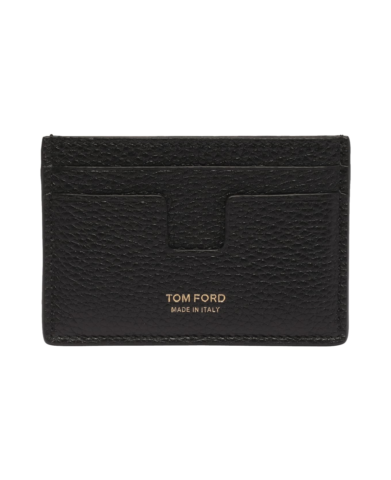 Tom Ford black Logo cards holder, 4 slots, frontal logo gold