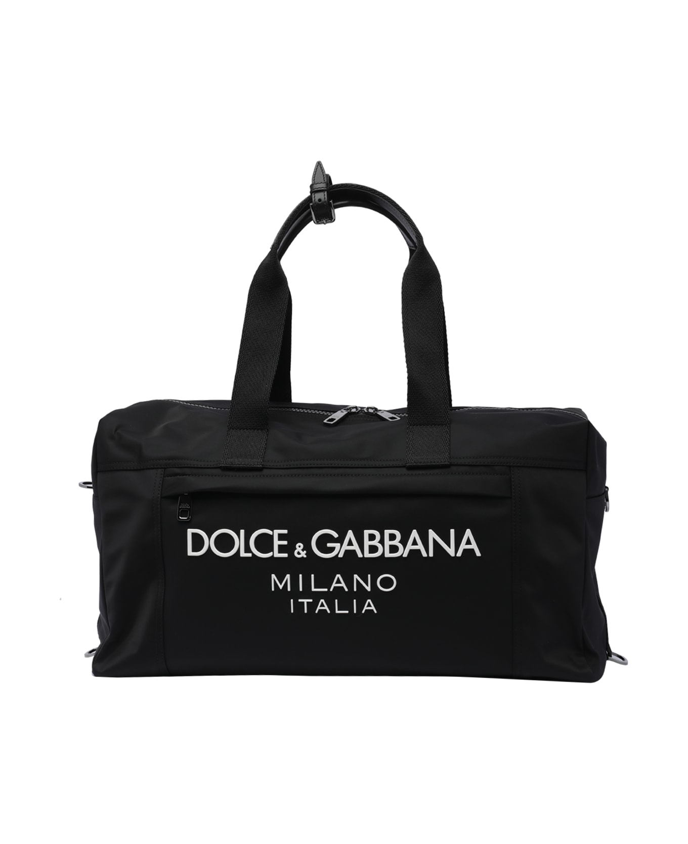 Dolce&Gabbana black logo duffle bag, zip closure, inner zipped pocket, 2 shoulder straps, adaptable and removable strap, frontal logo Composition: 30% Nylon, 40% Polyamide, 20% Acrylic, 10% Calf Leather