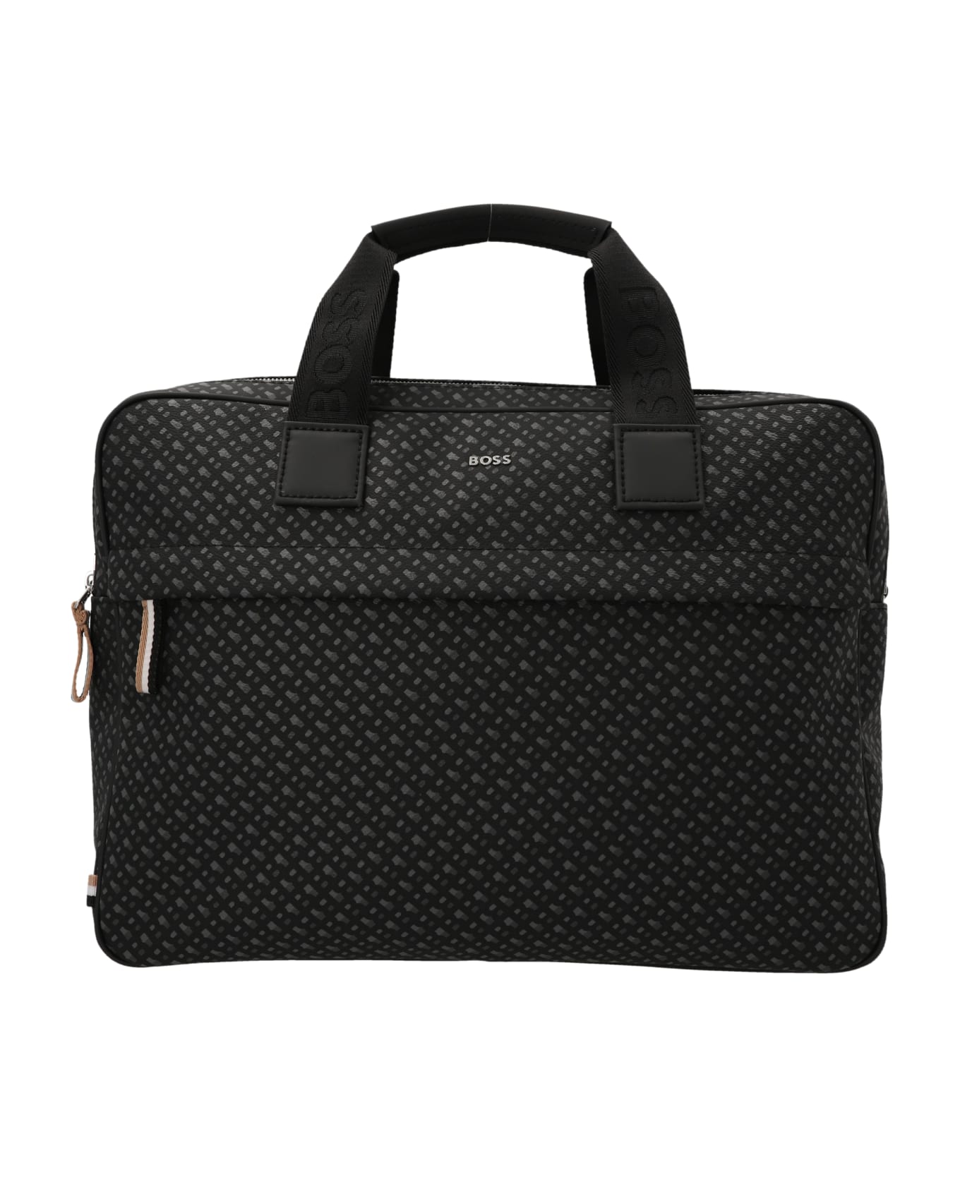 Byron Doc Case' leather handbag with n all-over patterned print, zip closure, double handle, n adjustable and removable shoulder strap.