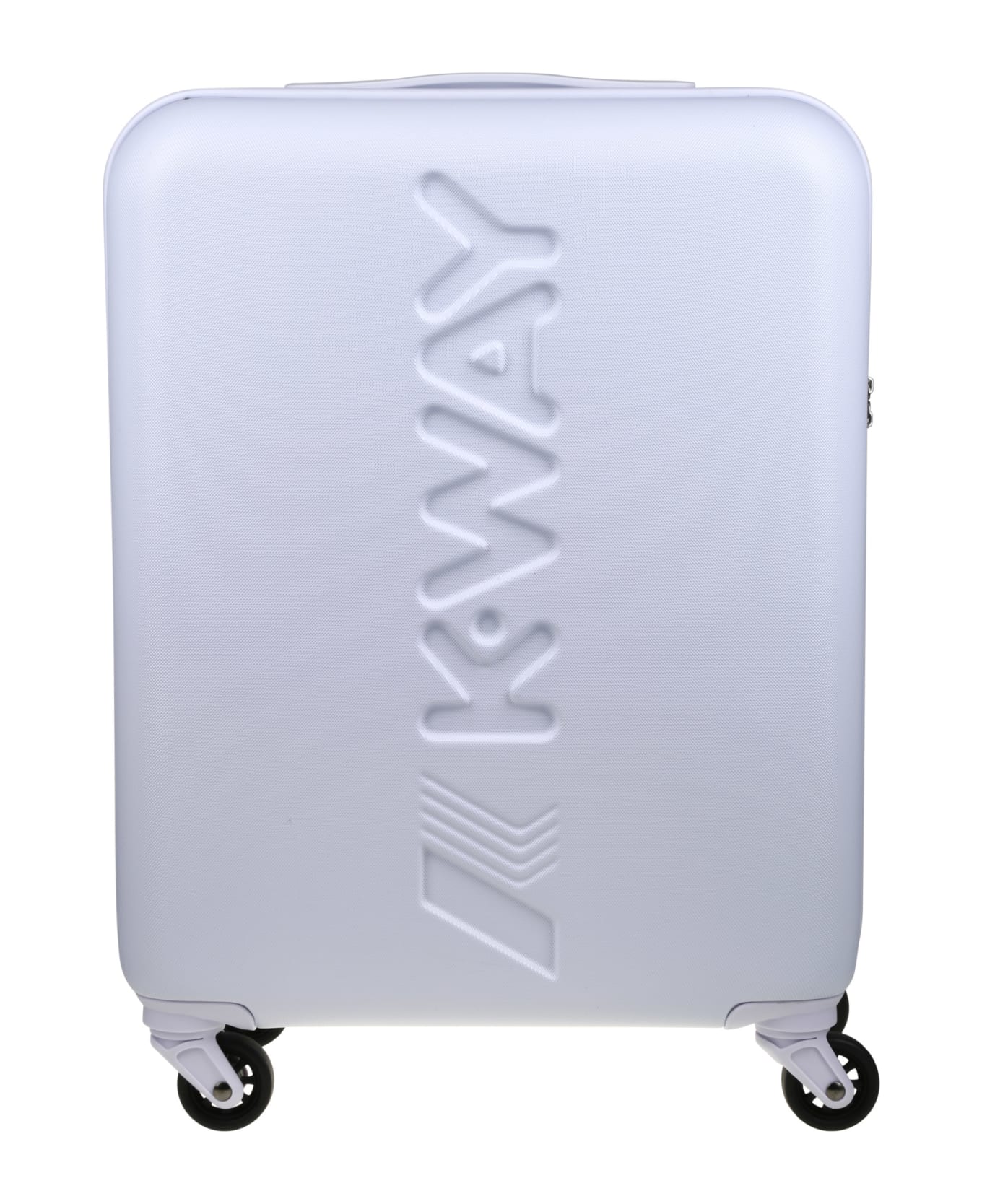 K-way Rigid travel trolley, maxi K-Way logo printed on the front, hand luggage size, four 360° rotating wheels, two pockets with zip inside and crossed elastic bands, double-slider zip closure with padlock, handle customized aluminum extensible. Measurements: height 55cm x width 40cm x depth 20cm