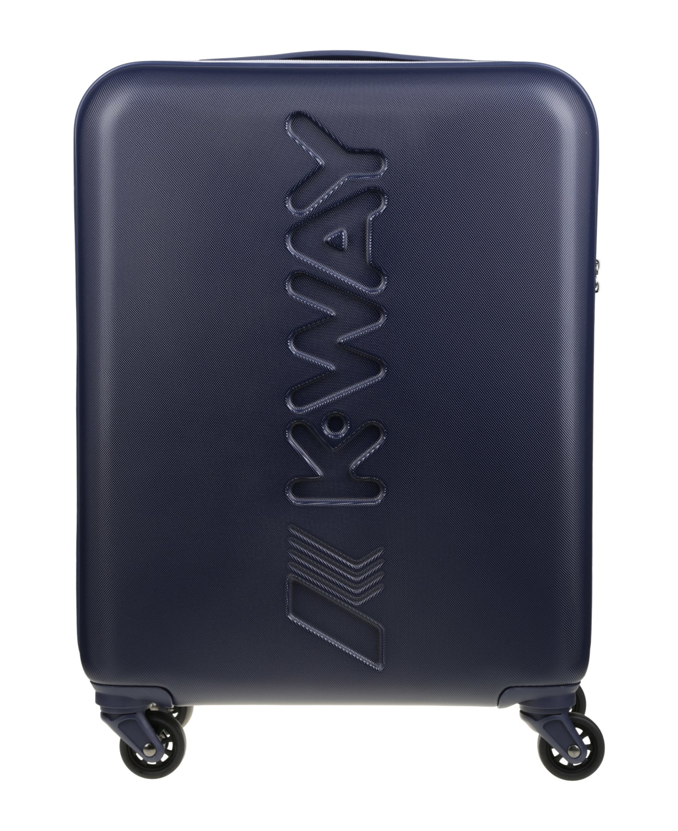 K-way Rigid travel trolley, maxi K-Way logo printed on the front, hand luggage size, four 360° rotating wheels, two pockets with zip inside and crossed elastic bands, double-slider zip closure with padlock, handle customized aluminum extensible. Measurements: height 55cm x width 40cm x depth 20cm