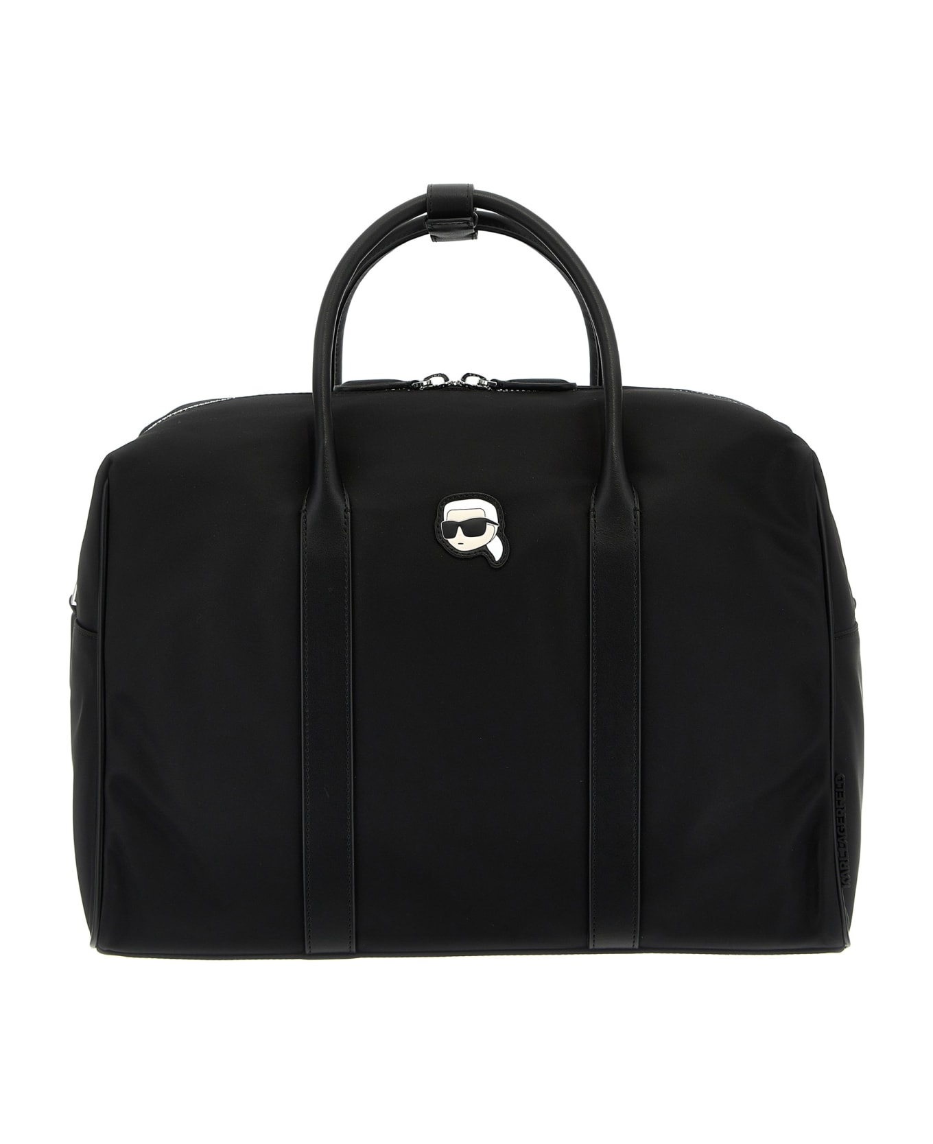 'K/Ikonik' nylon duffel bag with front patch, zip closure, double handle, adjustable and removable shoulder strap.