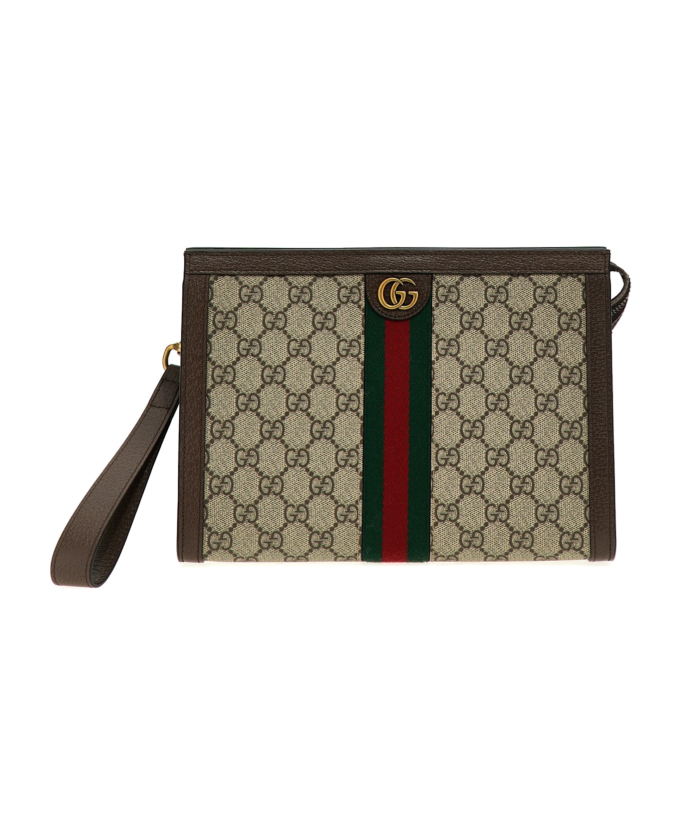 'Ophidia GG' clutch bag in GG Supreme fabric with leather details, zip closure, removable wrist handle.