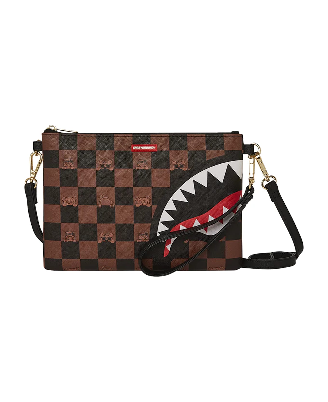 Sprayground brown Peeking Character Check pochette, zip closure, adaptable strap, wrinkle strap, logo allover Composition: 100% Pvc
