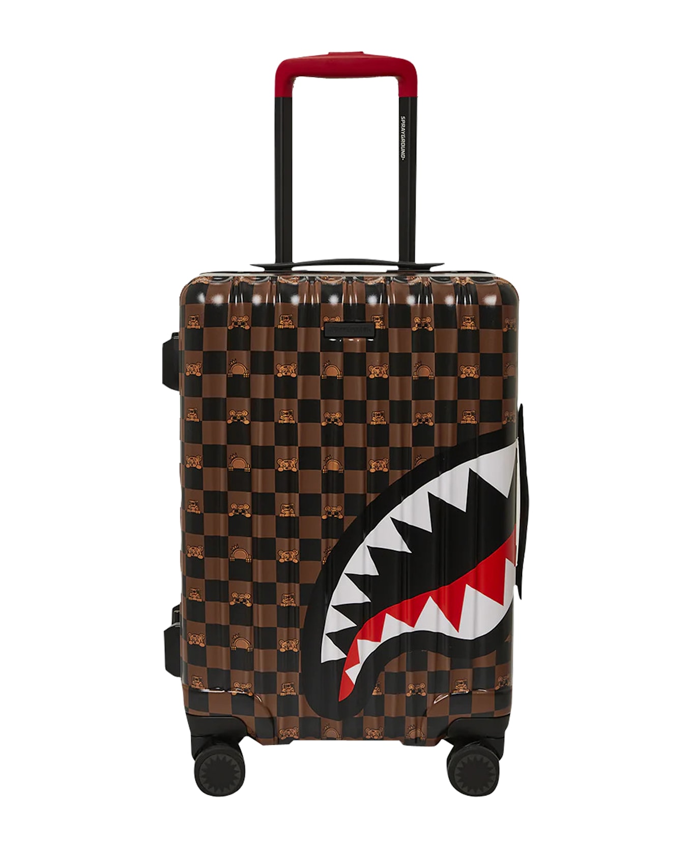 Sprayground dark brown Sip Carryon trolley, zip closure, tsa security locks, 2 sections, 4 wheels, logo pattern