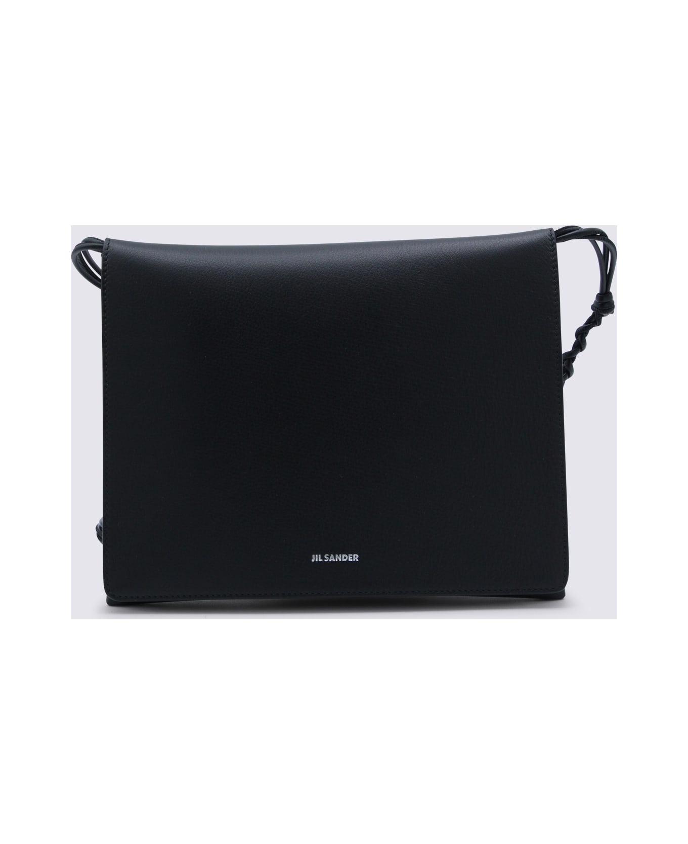 Black Tangle Flat Md shoulder bag from Jil Sander featuring adjustable hand-knotted shoulder strap, main compartment, frontal magnetic closure and silver tone embossed logo. Composition: _, 100% Pbv