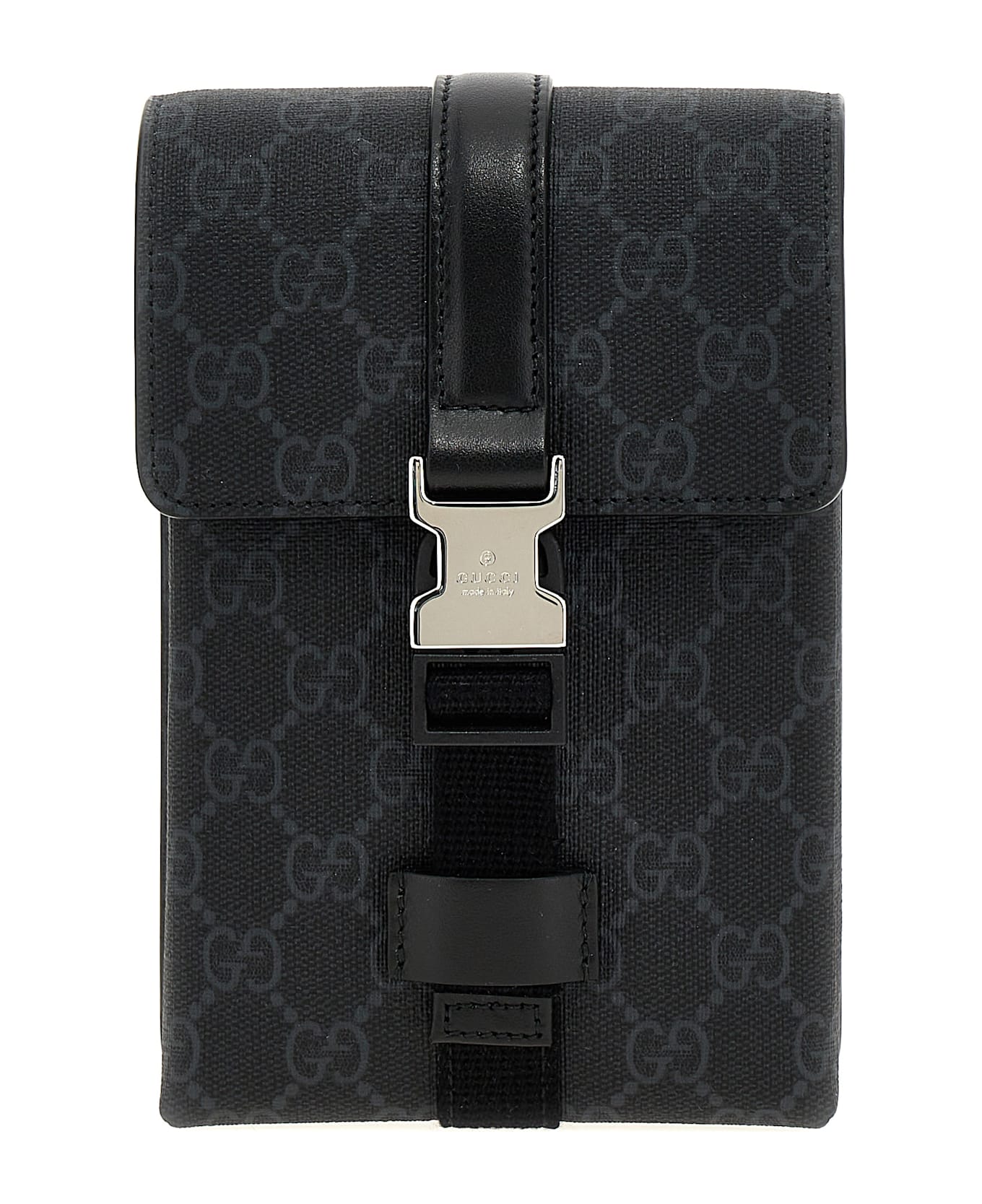 GG Supreme fabric mini crossbody bag with leather details, flap closure with metal buckle, adjustable and removable Nastro Web fabric shoulder strap.
