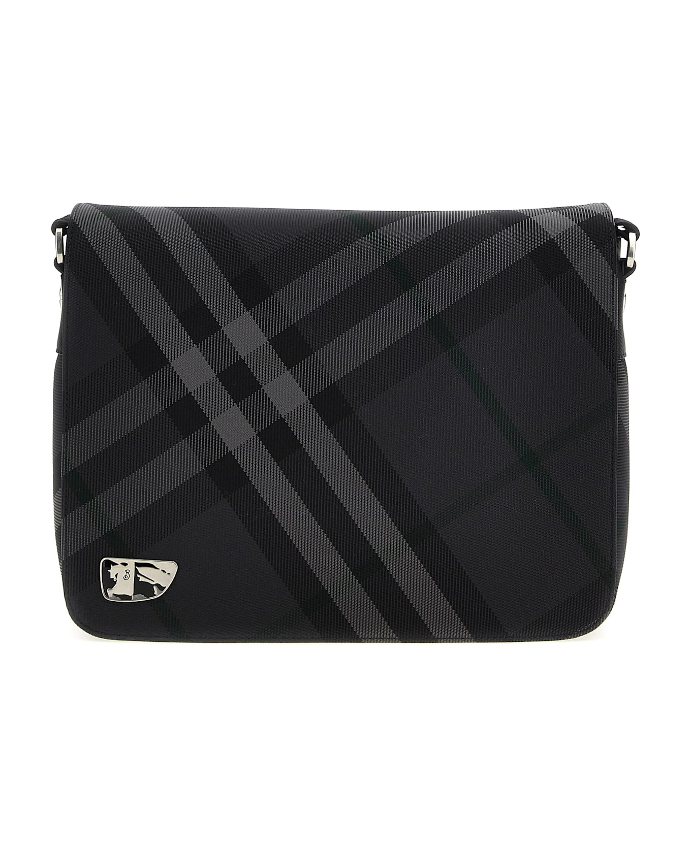 'Grid Messenger' crossbody bag in check print fabric, front metal logo, magnetic flap closure, back zip pocket, adjustable shoulder strap. Composition: 90% polyamide 10% polyurethane
