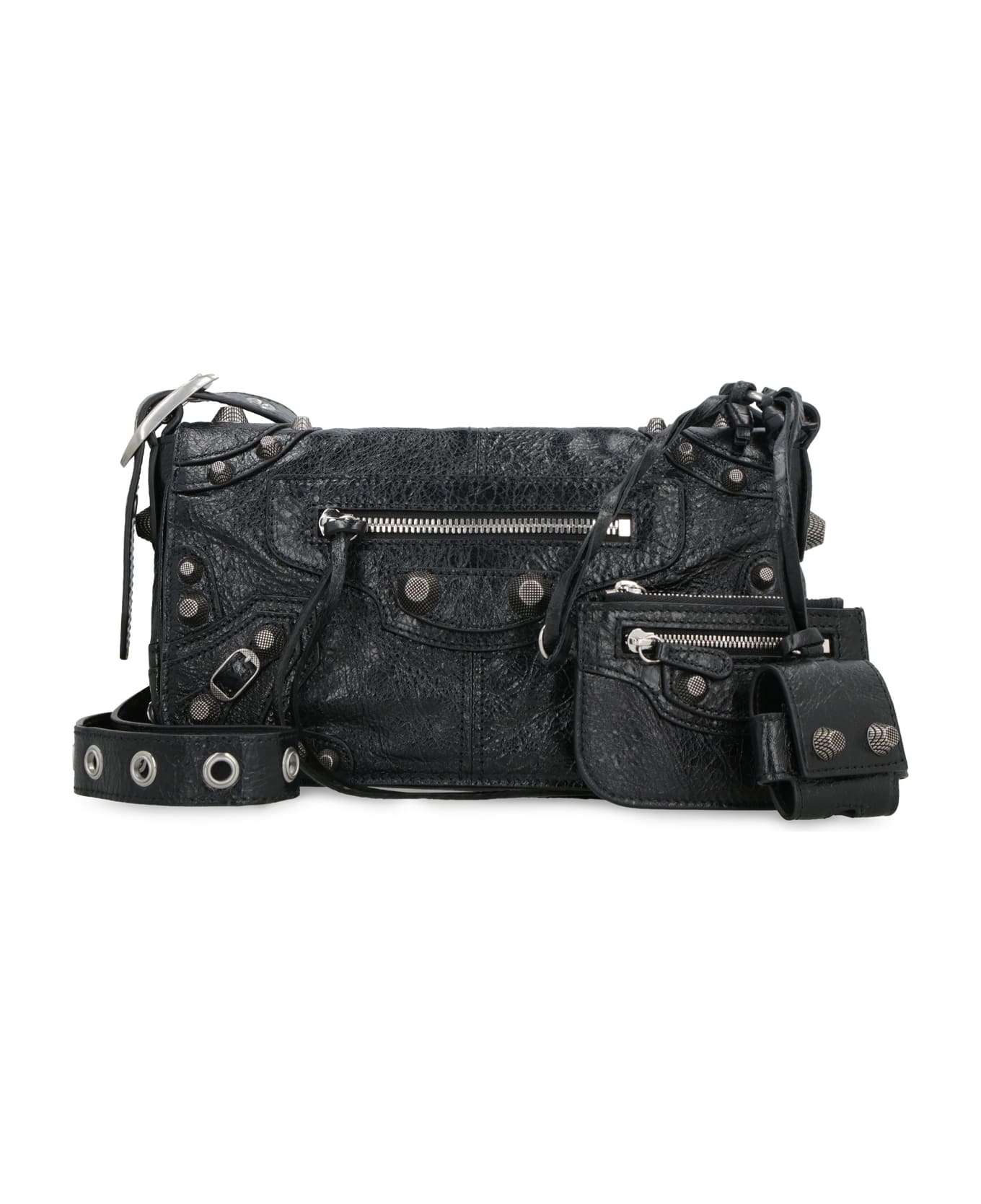 Lamb leather item decorative front metal studs and buckles magnetic flap closure leather framed mirror airpods case back zippered pocket zippered front pocket internal zippered pocket adjustable leather shoulder strap silver-tone metal hardware fabric lining width: 24 cm height: 14 cm depth: 5 cm strap: 120 cm 100% lamb Composition: 100% % Lamb