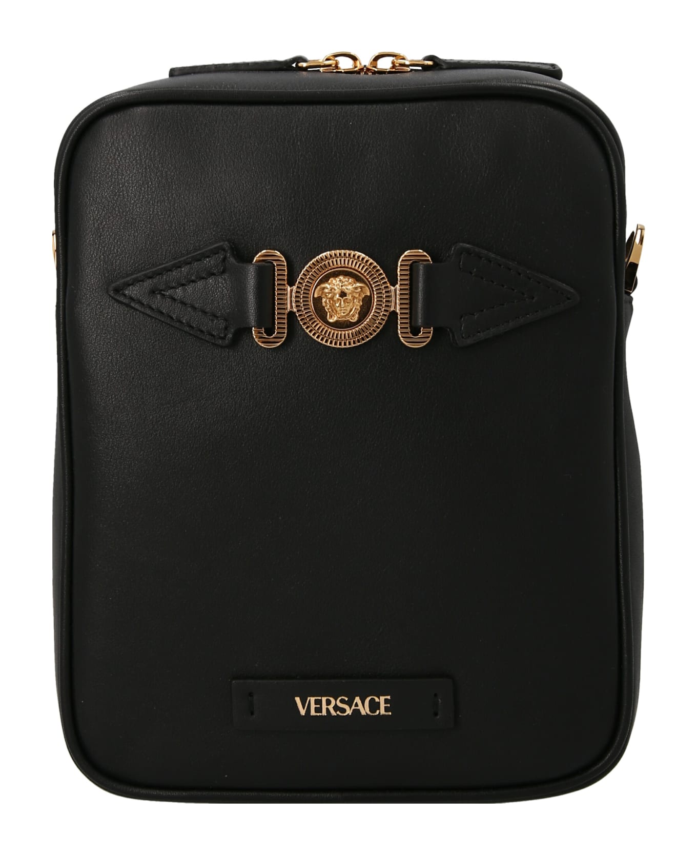 Leather crossbody bag featuring 'Medusa Biggie' elements, an adjustable and removable shoulder strap, and a double top zip fastening.. Composition: 100% calf leather (bos taurus)