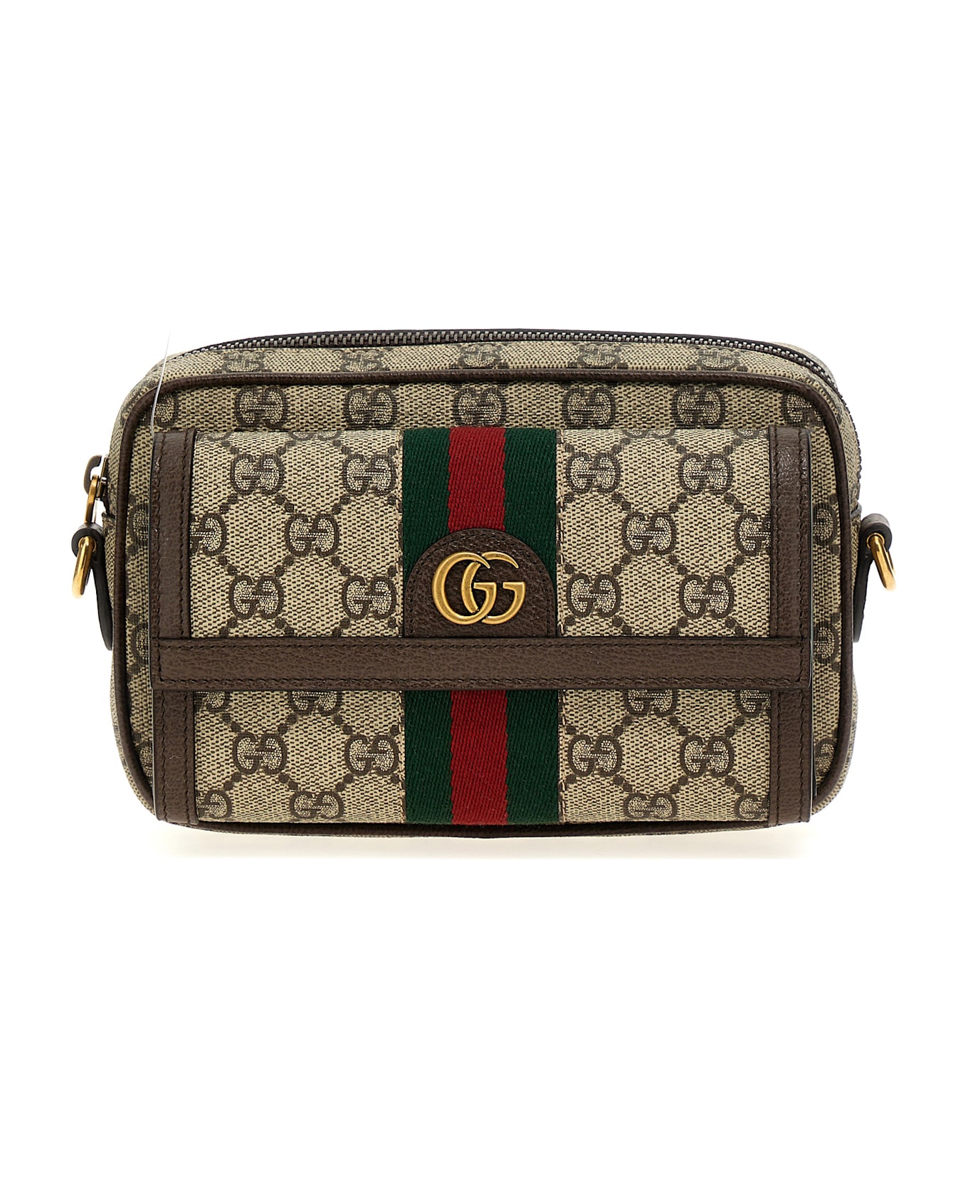 'Mini Ophidia' crossbody bag in GG Supreme fabric with leather details, web ribbon and metal logo on the front, zip closure, adjustable and removable shoulder strap. Composition: 60% polyurethane 20% cotton 20% polyester