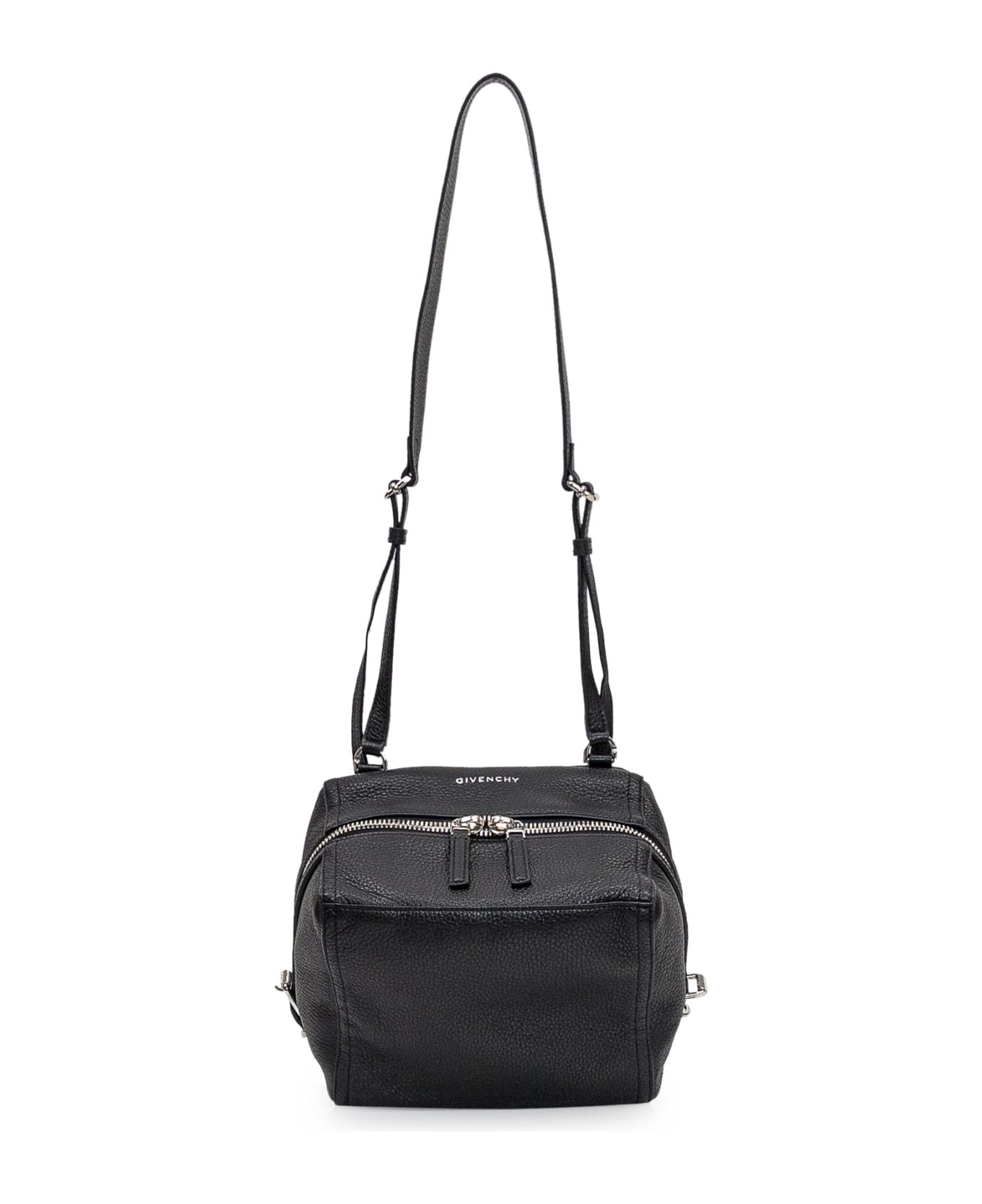 Black shoulder bag. Adjustable shoulder strap with GIVENCHY Logo. One compartment. Zip closure. One flat pocket on the back. Logo on the front.