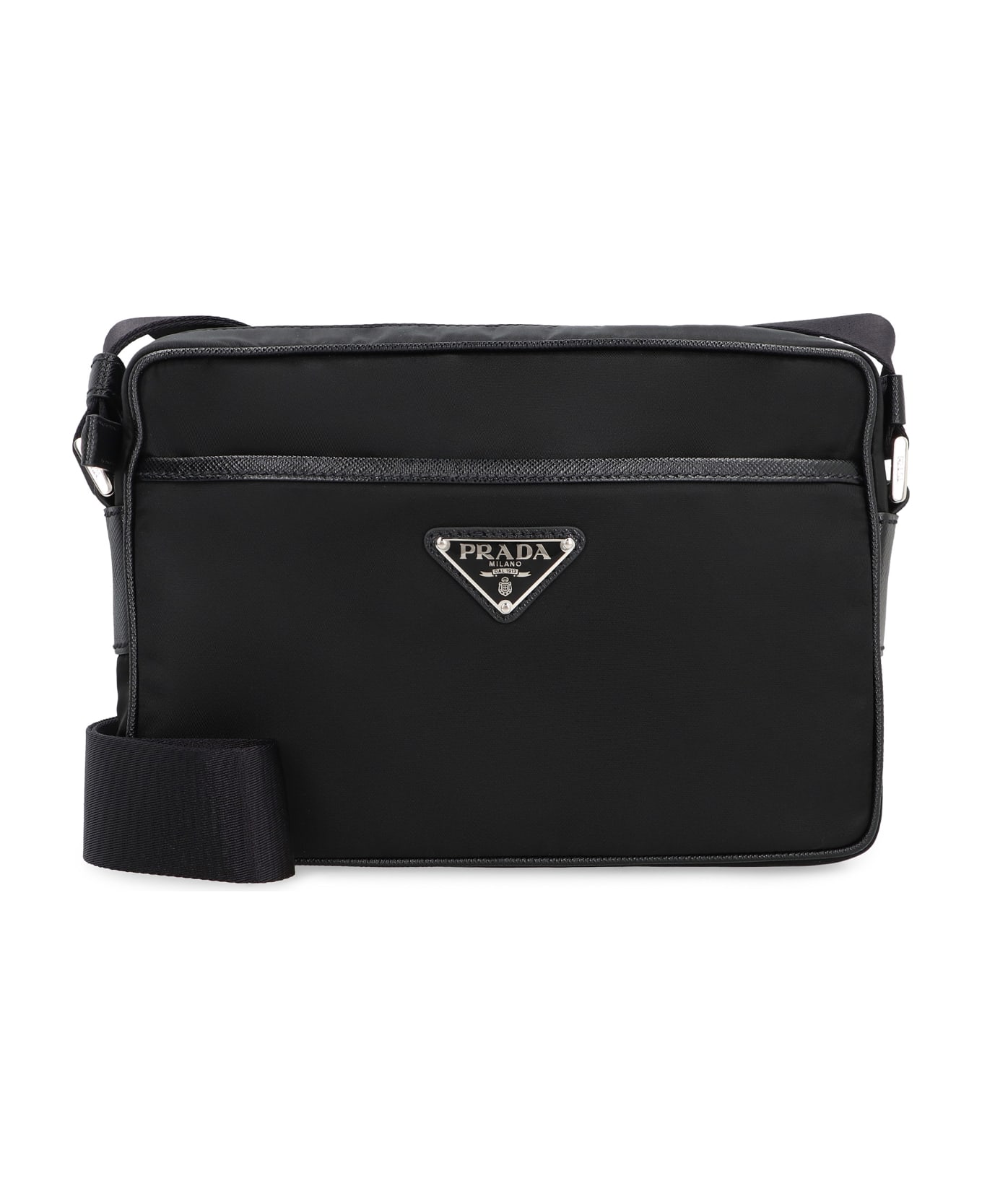 Nylon item with leather details top zip closure front zip pocket internal zippered pocket removable fabric strap silver-tone metal hardware jacquard fabric lining with logo width: 23 cm height: 17 cm depth: 7 cm strap: 120 cm 100% calf, 100% nylon Composition: 100% % Calf, 100% % Nylon