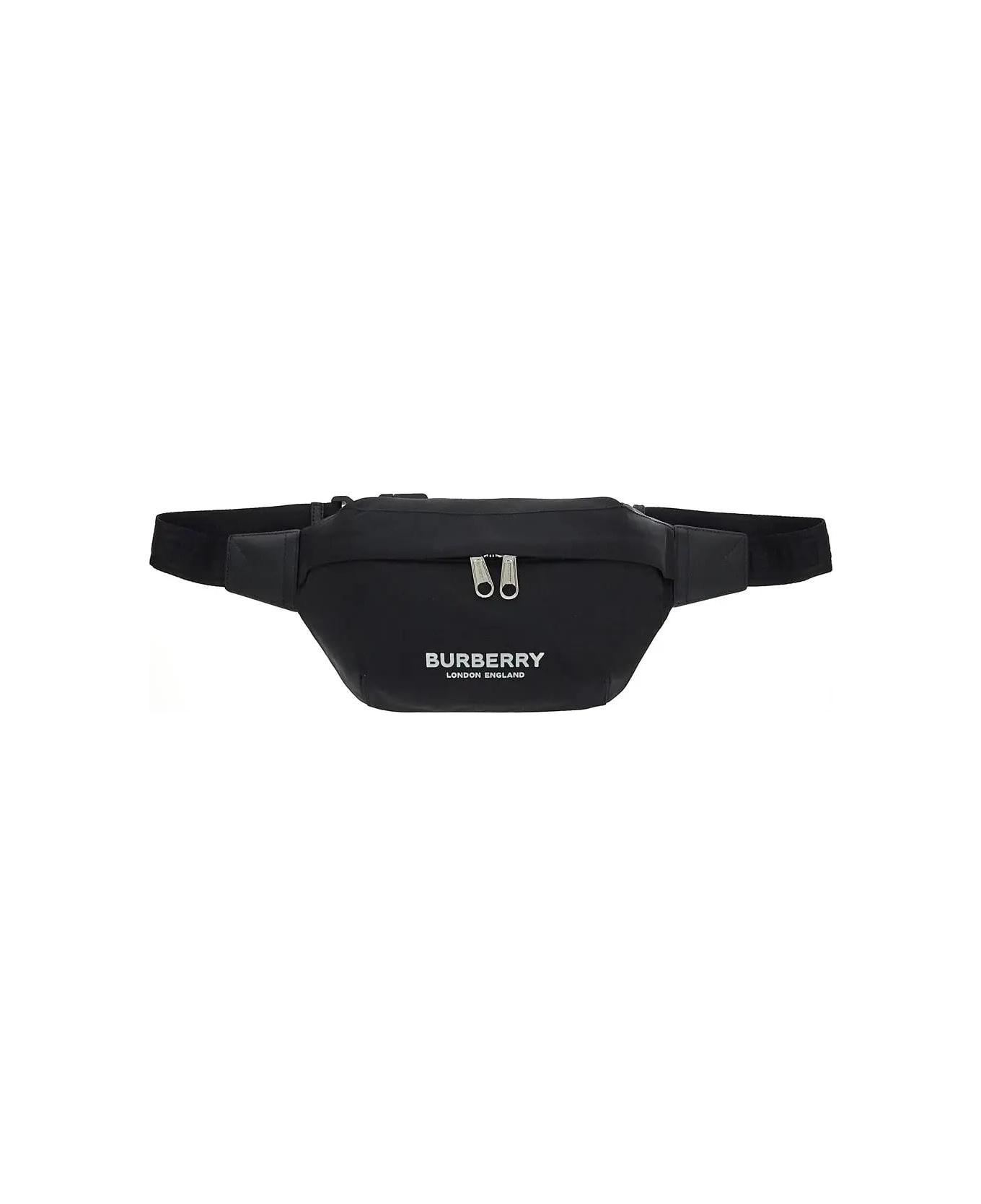 Burberry beltbag in black nylon with zip closure and printed logo Composition: 100%POLYAMIDE (NYLON)