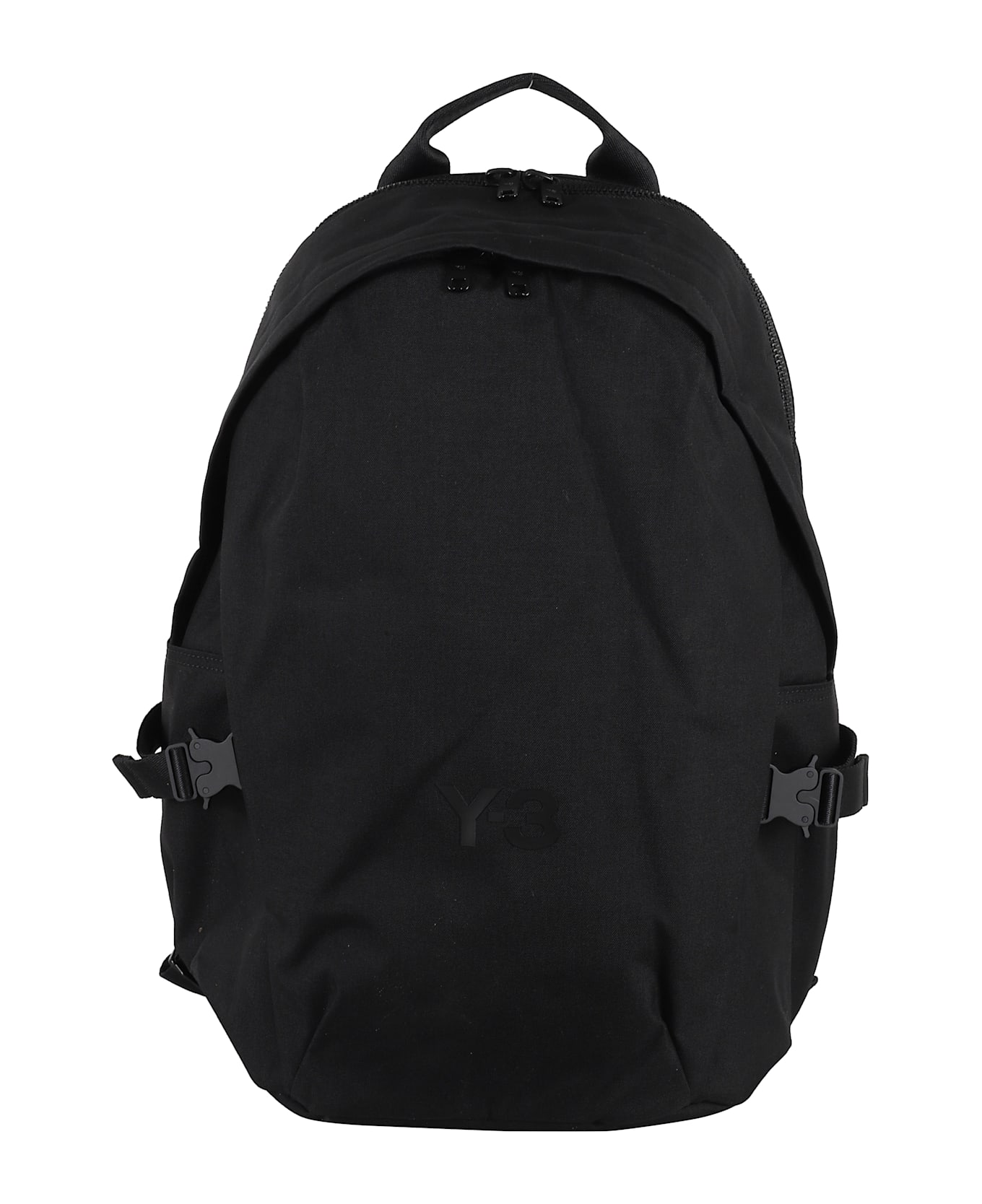 Backpack - Y-3 - Black color - Dimensions: Height: 43cm Width: 30cm Depth: 16cm - Adjustable padded shoulder straps - Single handle - Two large main compartments plus a padded laptop compartment - Silicone logo details - Two side pockets - Hidden pocket with zipper closure - Metal buckles on side pockets.