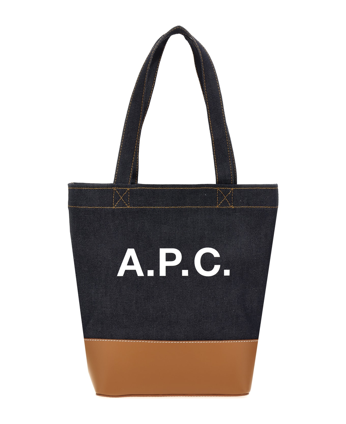 Small 'Axel' denim shopping bag with contrasting leather part and logo print.