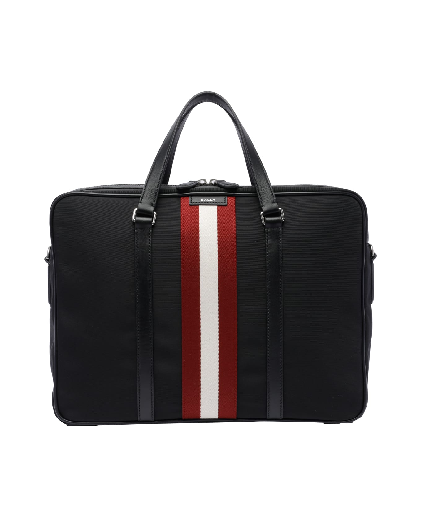Bally Code Briefcase, zip closure, one inner open pocket, zipped pocket, one zipped, one for laptop, adjustable and removable shoulder strap, double handles Composition: 100% Fabric, 100% Calf Leather