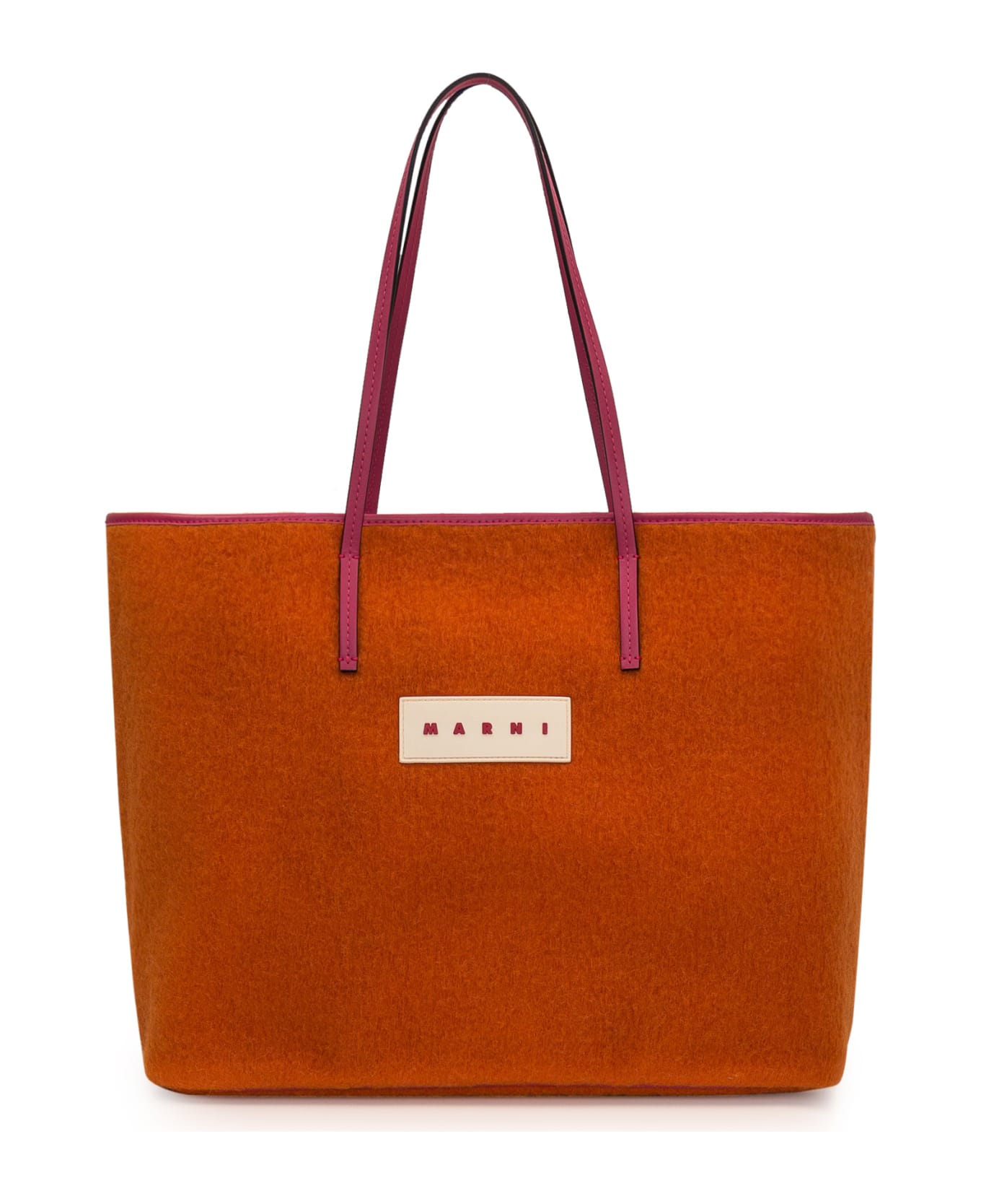 Orange shopping bag. Two handles. Closure with laces. Logo patch on the front. Composition: Outside: 66% Wool, 35% Polyester Finishing: 100% Calfskin