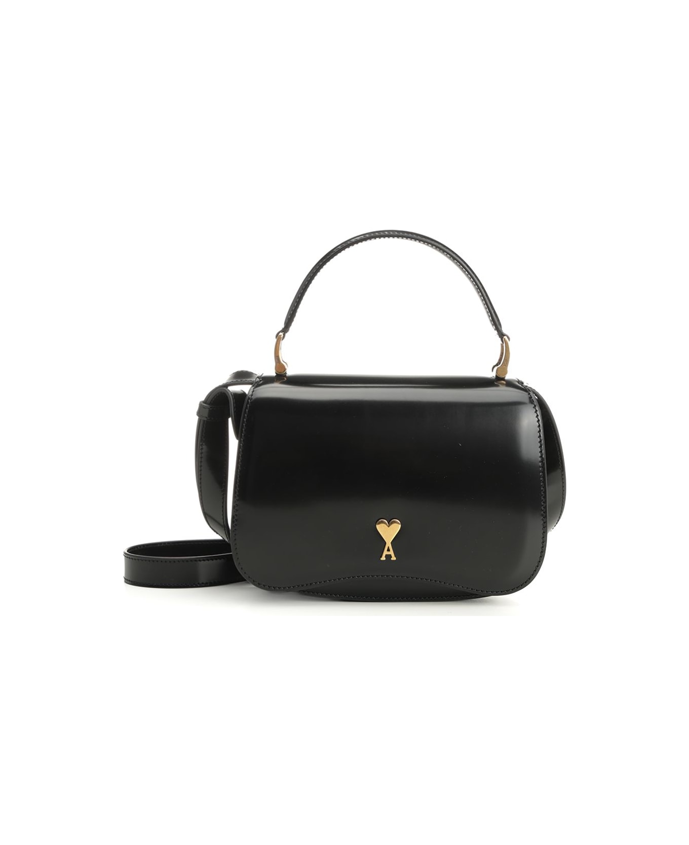 "Paris Paris" top handle bag in enameled calfskin from Ami, with adjustable and removable leather shoulder strap, vibrato brass-colored metal hardware, a central compartment with a patch pocket and a front compartment, suede lambskin lining and Ami de Coeur stud