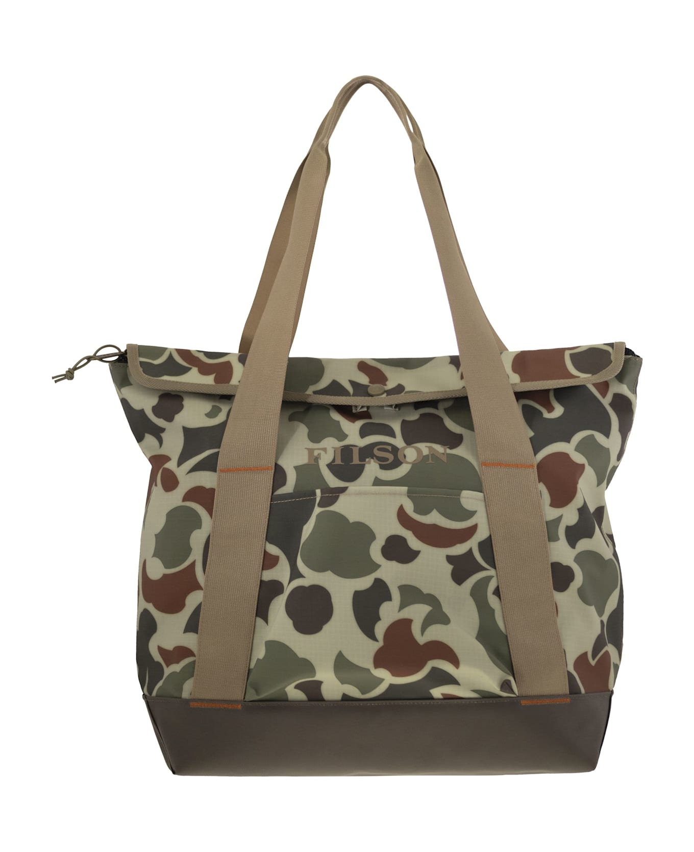 This versatile tote bag is made to keep your items dry even in the harshest weather conditions. The main material of the bag is 300D ripstop polyester, while the bottom is made of ultra-durable 600D Oxford polyester. These fabrics are made from fully recycled materials and treated with thermoplastic polyurethane (TPU) to ensure maximum waterproofing. The bottom panel is padded to protect your items, as is the interior pocket, ideal for storing laptops up to 16 inches. The zippered mesh interior pocket and exterior storage pocket give you easy access to the bag's contents and keep your essentials in order at all times. The main compartment's sturdy spiral zipper is protected by a flap that closes with a corrosion-resistant snap button. Sturdy nylon webbing handles 2 inches wide. - 23-liter capacity - Shoulder bag DESIGNER ID: FMBAG0084 W0943 971