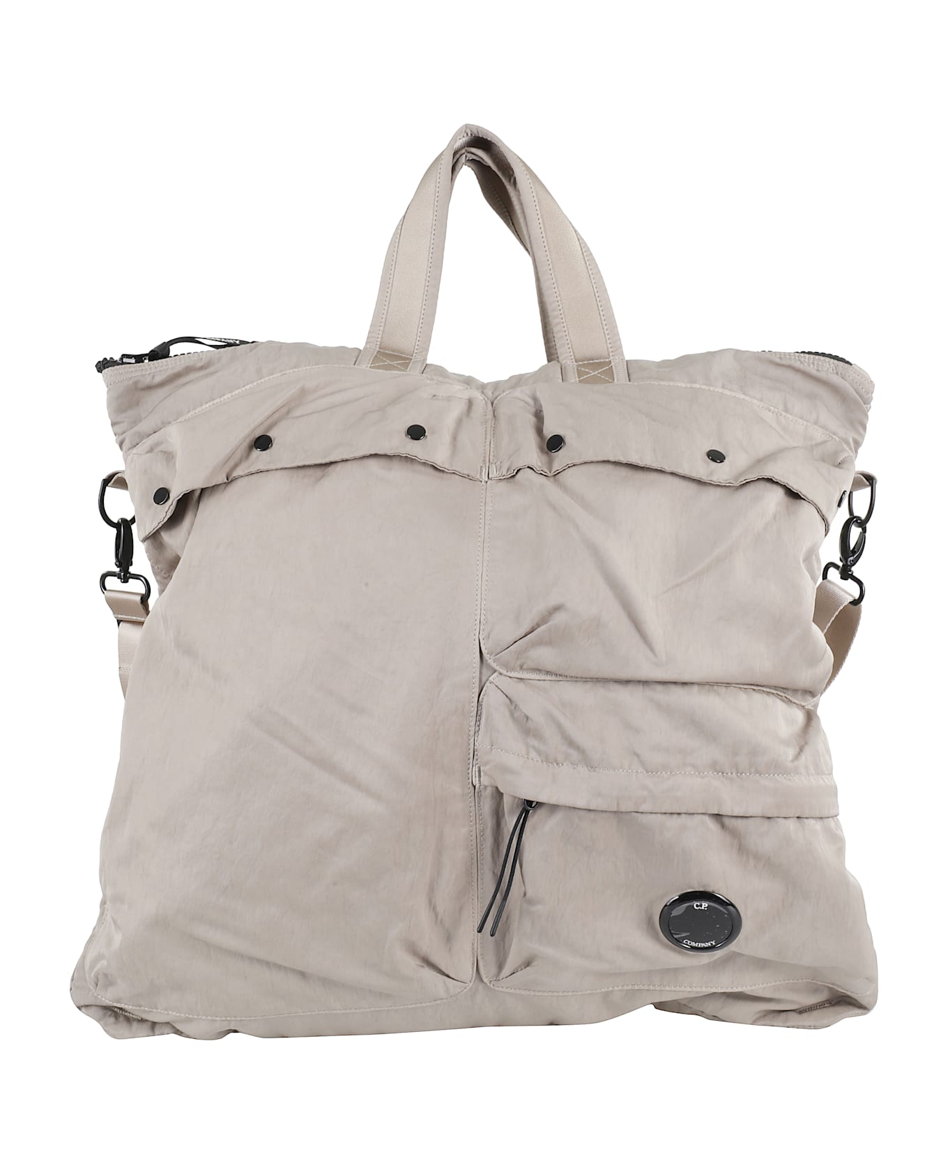 Lens Tote Bag - C. P. Company - Khaki color - Made of nylon - Exterior flap pockets - Lens and zipper pocket - Double handles - Adjustable and removable shoulder strap - Size: 47 x 50 cm