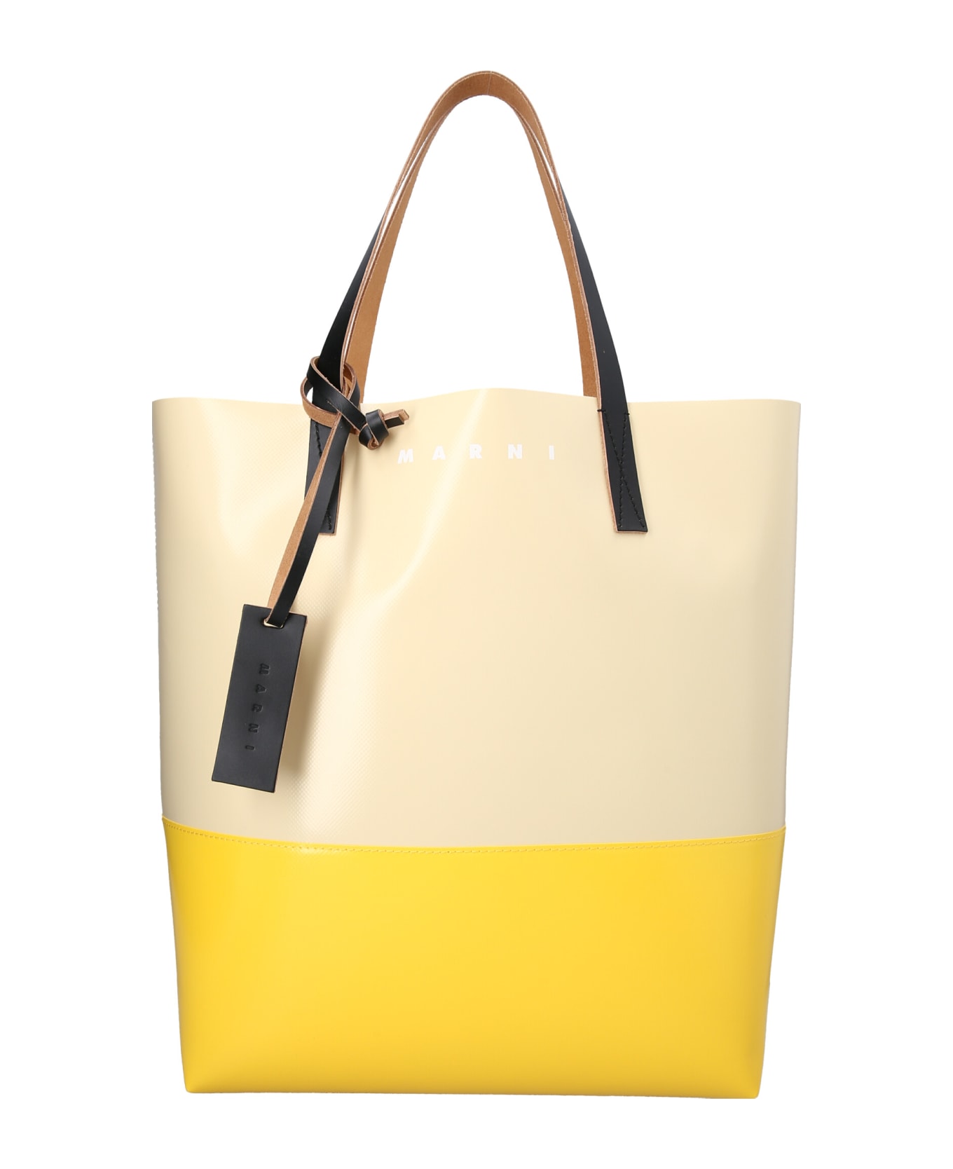 Tribeca' shopping bag in a two-tone plastic material, with front pocket with logo print, double leather handle and a leather logo charm. Composition: 100% polyester