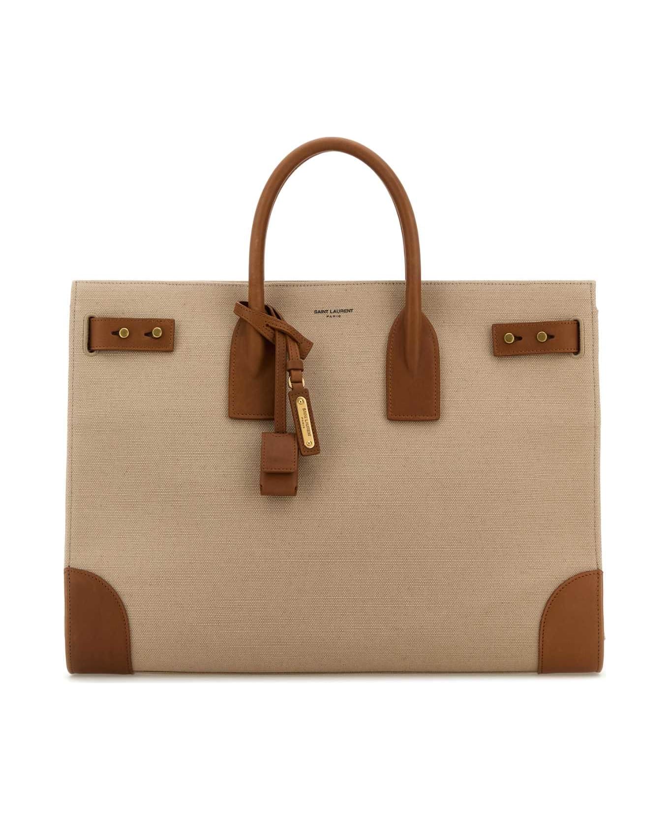 Two-tone Canvas And Leather Large Sac De Jour Handbag from Saint Laurent