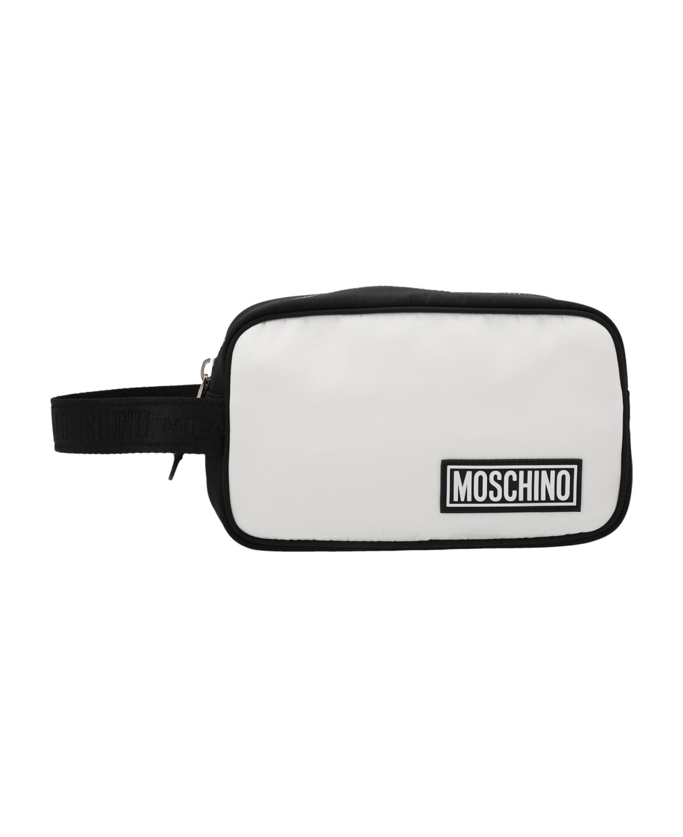 'Washbag Label' nylon beauty case featuring a zip closure and a rubberized contrasting logo patch. Composition: 60% polyester 40% polyamide