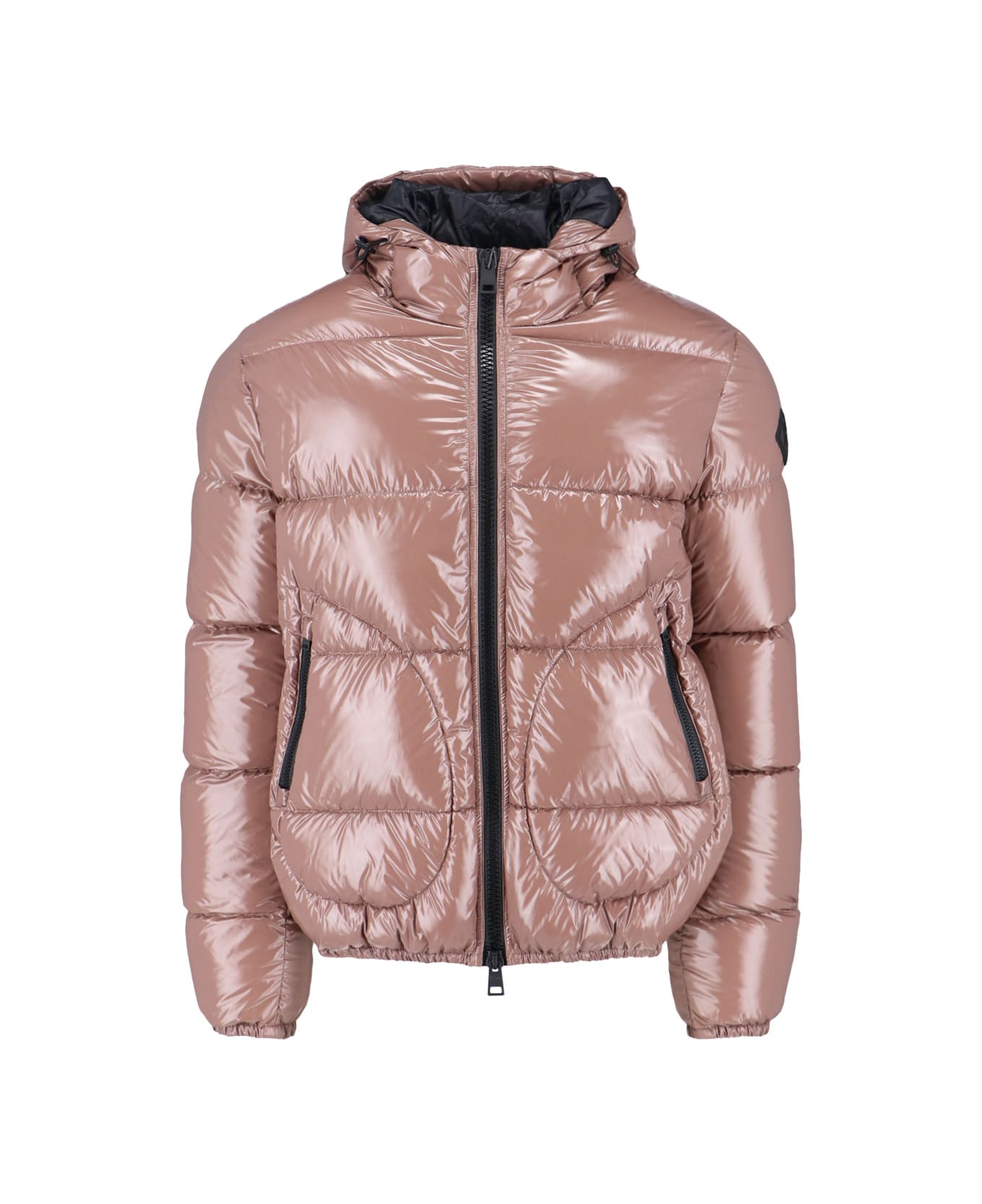 Herno 'Gloss' brown fabric down jacket with drawstring hood, double zip closure, two side zip pockets, contrasting side logo, elasticated hem and cuffs, straight hem. Composition: 100% Polyamide