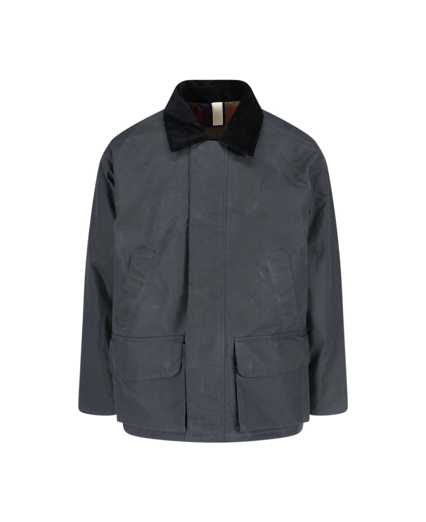 Sunflower 'Leisure' technical jacket in grey coated cotton with classic black corduroy collar, button closure and double hidden zip, two front pockets, two side button flap pockets, straight hem.