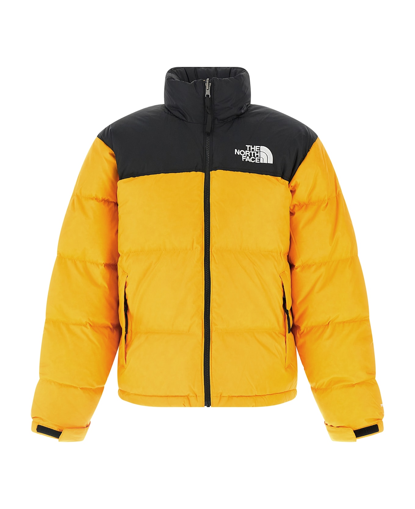 '1996 Retro Nuptse' quilted nylon down jacket with goose feather padding, standing collar with removable hood, logo embroidery on the front and back, front zip closure, pockets, long sleeves with adjustable cuffs, drawstring at the hem.