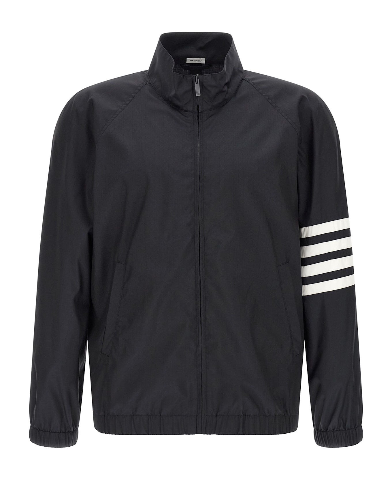 Shiny ripstop fabric jacket, unlined, high neck, front zip closure, pockets, long raglan sleeves with '4Bar' detail and elastic cuffs, elastic on the hem. Composition: 81% polyamide, 19% polyester