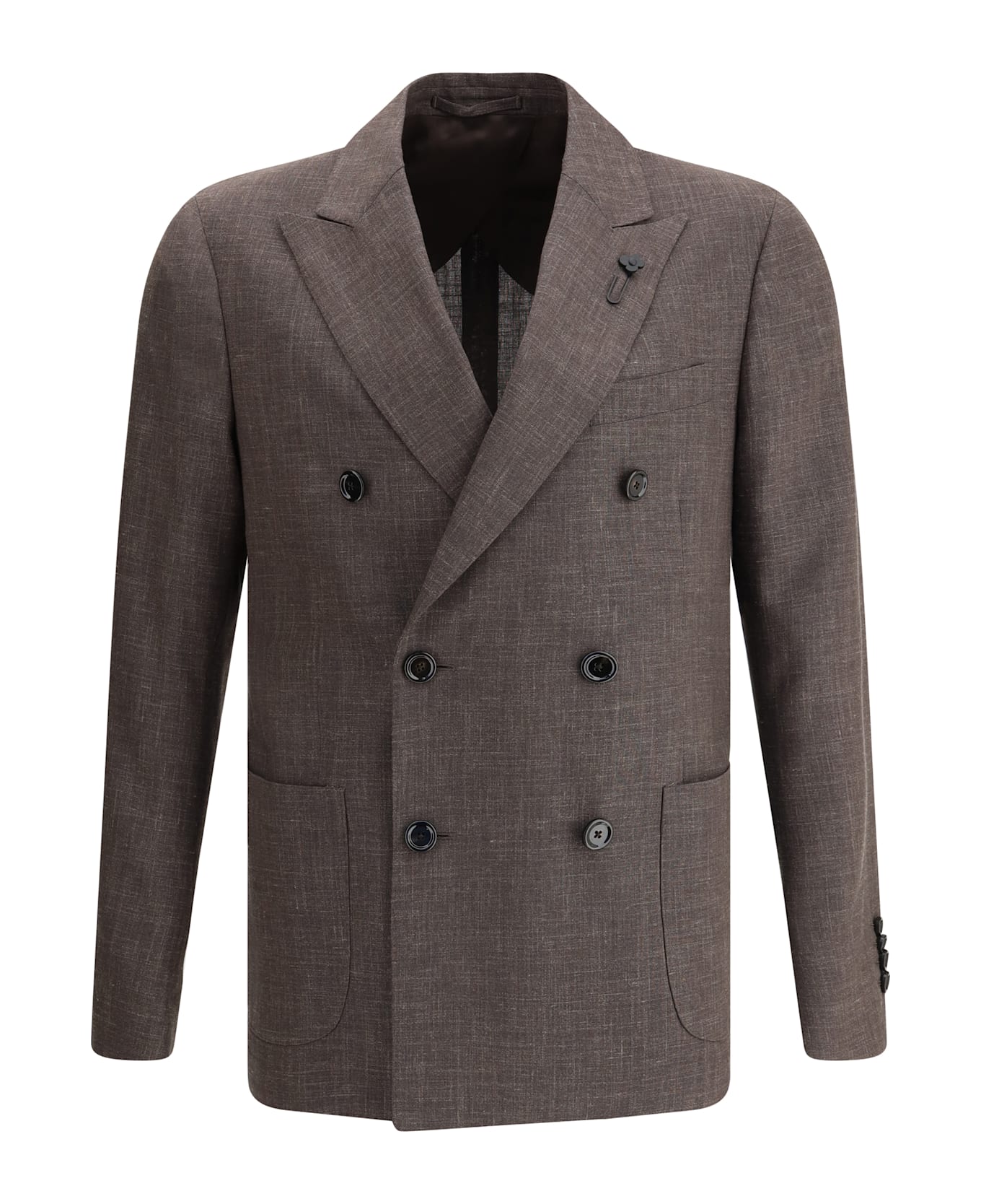 The lardini wool blazer jacket is an elegant and sophisticated piece, ideal for a formal yet sophisticated look. the peak lapel is embellished with an iconic flower brooch, which adds a touch of originality and refinement. the double-breasted button closure gives a classic and structured look, while the two welt pockets applied on the front and the single front pocket offer functionality and style details. the two vents on the back guarantee comfort and freedom of movement. the mélange pattern gives an interesting and versatile visual effect, making this blazer a sophisticated piece suitable for different occasions.