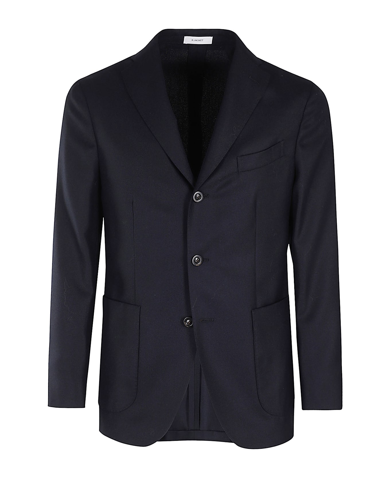 K jacket - Boglioli - Blue color - Virgin wool fabric - Unlined - Lapel neckline - Long sleeve with logo buttons at hem - Flush chest pocket - Side patch pockets - Single breasted button closure - Double back vent.